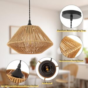 CXWV Pendant Light 11.8-inch Woven Hemp Rope Lamp E26 Base V
