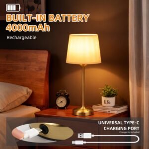 Deogos Lámpara de mesa inalámbrica dorada con atenuador, lám