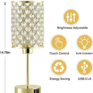 Acaxin Lámparas de cristal táctiles para mesita de noche de