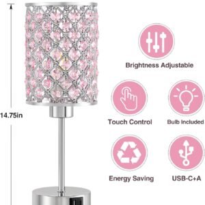 GyroVu Lámpara de mesa de cristal, lámpara rosa táctil con p