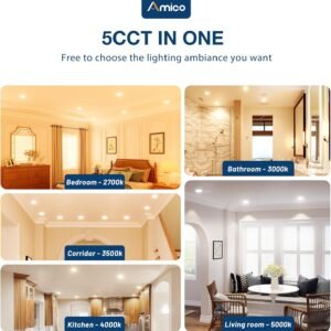 Amico 12 Pack 4 Inch 5CCT Ultra-Thin LED Recessed Dimmable C