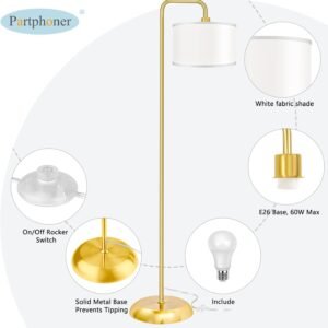 3 bombillas LED de temperatura de color incluidas Nuestra lámpara de pie moderna incluye una bombilla LED E26 de 9 W. La bombilla tiene 3 temperaturas de color ajustables 2700K/4000K/5000K, y crea 810 lúmenes de brillo suficiente para tu vida. La lámpara de pie es adecuada para todos los estilos de habitación, como la suavidad de la luz cálida que te ofrece una sensación cálida, y el brillo de la luz fría que te brinda un buen ambiente de lectura y protege tus ojos. Práctico interruptor de pedal de pie La lámpara de pie para la sala de estar está construida con interruptor de pedal y un cable de alimentación de 6 pies. Te permite encender o apagar la lámpara con el pie y ahorra nuestras manos para hacer otra cosa. El cable de alimentación largo te permite colocar la hermosa luz en la posición correcta con limitaciones mínimas. Diseño elegante y moderno La lámpara de pie moderna dorada de partphoner es adecuada para arquitectura y decoración moderna, se adapta a cualquier estilo de habitación, su pantalla de lino color crema blanco perfecta combinada con el poste de lámpara de metal bañado en oro se ve hermosa y moderna en la sala de estar, dormitorio, estudio, etc. en tu hogar u oficina. Además, la lámpara de pie para dormitorios es muy fácil de montar. Perfecta para todas las ocasiones Ya sea que leas libros en un sillón reclinable o trabajes en un escritorio, esta lámpara de pie clásica se adapta fácilmente al lado de tus muebles. Su diseño delgado permite que se coloque bien cerca de sofás, sillones, mesas auxiliares, etc. La lámpara de pie para mesita de noche puede satisfacer tus necesidades básicas de iluminación. Fácil de usar y sin preocupaciones todo viene con el paquete, simplemente atornilla algunos tubos juntos y luego podrás disfrutar de la lámpara de pie LED inmediatamente. Además, ofrecemos una garantía de 1 año, si tienes alguna pregunta, no dudes en ponerte en contacto con nosotros, te responderemos dentro de 24 horas para proporcionar las soluciones y servicios más satisfactorios.