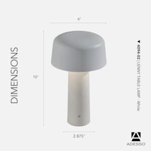 Diseño moderno y elegante: las luces Adesso funcionan con pilas cuentan con una sofisticada pantalla de metal blanco con un difusor esmerilado acanalado. Su altura compacta de 25,4 cm se adapta perfectamente a mesitas de noche, escritorios o patios y combina perfectamente con una decoración moderna. Regulador táctil de 3 niveles: ajusta el brillo con un simple toque con esta lámpara de noche. Elige entre ajustes bajos, medios y altos para crear el ambiente perfecto para leer, trabajar o relajarse. Este diseño garantiza el control al alcance de tu mano. Comodidad sin cables: alimentada por un LED recargable de 1.5 W, esta lámpara proporciona iluminación de bajo consumo sin cables desordenados. Disfruta de varias horas de iluminación con una sola carga, por lo que es perfecto para el hogar, oficina, uso al aire libre o luces de cocina. Duradera y resistente al agua: con una calificación IPX4, esta lámpara está diseñada tanto para entornos interiores como exteriores. Úsalo de forma segura en mesitas de noche, patios o balcones, incluso en condiciones húmedas. Su diseño robusto garantiza un rendimiento duradero. Carga rápida USB-C: recarga en solo 4 horas con el cable de carga USB-C incluido. Diseñadas para la eficiencia, estas lámparas de mesa ofrecen una fácil configuración y operación. Su diámetro compacto de 15,2 cm garantiza comodidad para ahorrar espacio: 15,2 cm de profundidad x 15,2 cm de ancho x 25,4 cm de alto.