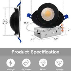 360° + 90° ajustable Las luces LED empotrables Adetu de 10,2 cm pueden ajustarse en 360° y subir 90°. 5 restablecimiento de temperatura de color: las luces LED empotrables delgadas sin lata de 10,2 cm 5 en 1 te ayudarán a deshacerte del problema de la temperatura del color y la coincidencia de la habitación. Hay 5 temperaturas: 2700 K (blanco suave), 3000 K (blanco cálido), 3500 K (blanco neutro), 4000 K (blanco frío) y 5000 K (luz diurna). Simplemente pruebe las diferentes temperaturas de color con el interruptor deslizante de la caja de conexiones para seleccionar la más adecuada para sus ubicaciones. Suave regulación Luces LED de reinicio para luces LED empotrables LED de 10,2 cm, montaje de techo diseñado para una atenuación suave del 5% al 100%. Y las luces de oblea son de alta calidad sin ningún parpadeo o zumbido no deseado. La iluminación empotrada de 10,2 cm es compatible con la mayoría de atenuadores y aplicable a varios escenarios como cocina, sala de estar, lugar de trabajo, áreas comunes y sofitos. Alto brillo La iluminación empotrada delgada de 10,2 cm utiliza la nueva generación de chips LED con lúmenes más altos y menor potencia, 982LM consume 10 vatios, ahorrándote hasta un 88% en costos de energía. Clasificación IC: la iluminación LED empotrada tiene clasificación IC, ETL y Energy Star y el terminal de cable está certificado por UL, lo que significa que la caja de conexiones está térmicamente protegida. Nuestra luz empotrable LED sin lata de 10,2 cm está garantizada. Si tienes algún problema de calidad o sugerencia, ponte en contacto con nosotros y resolveremos todos los problemas a tiempo Fácil de instalar Luz empotrada de bajo perfil adecuada para remodelaciones y nuevas renovaciones: haz un agujero en el techo con un rango de apertura de aproximadamente 4.02 a 11,5 cm (ya que 4.016 in son aproximadamente 10,2 cm y 4.528 in son aproximadamente 11,5 cm); conecta la caja en J al cable; utiliza clips de resorte para asegurarlo al techo. Instalación sin complicaciones en minutos. Se adapta a una variedad de techos y vigas. Las latas incrustadas ya no son una limitación de su elección.