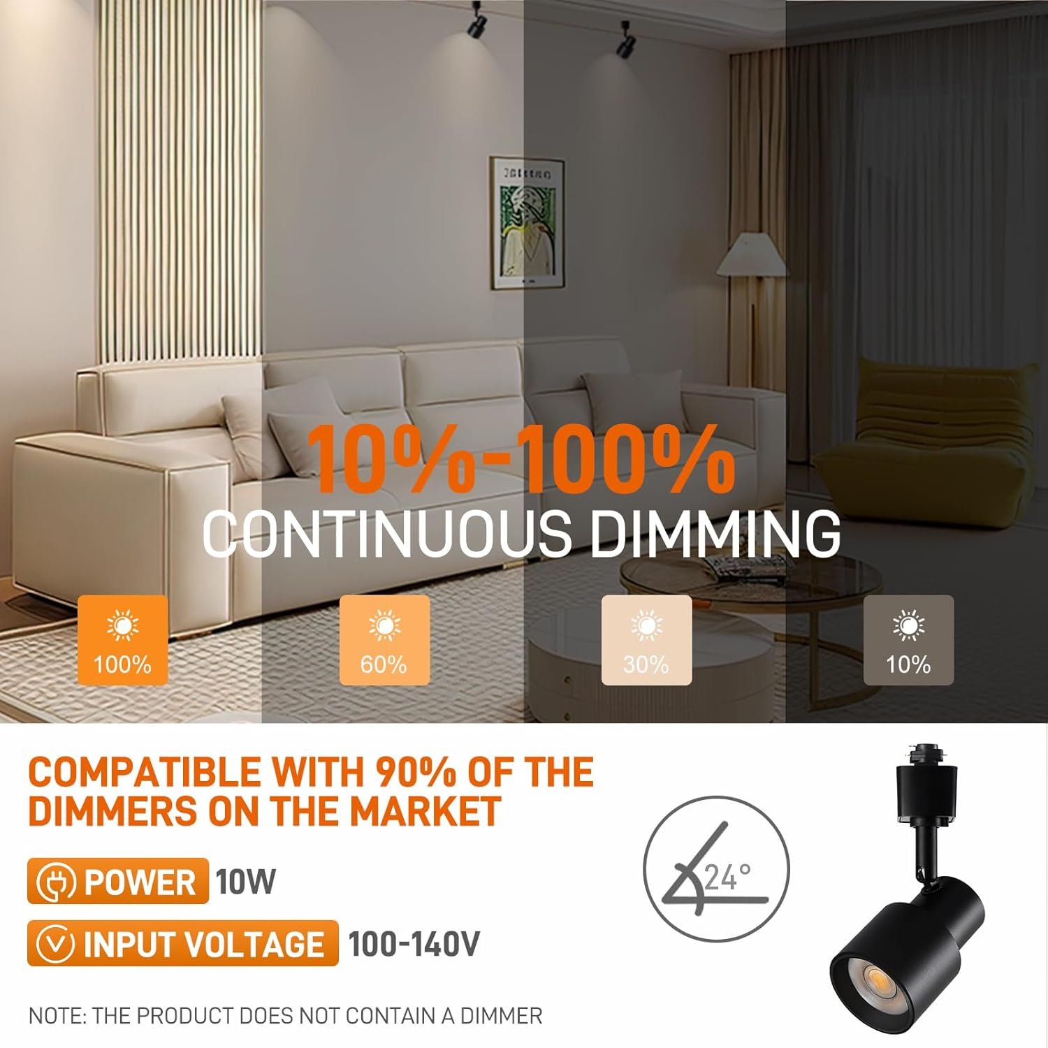 10 % a 100 % regulable suave: cabezales de luz LED tipo H regulables de 10 W con capacidades de atenuación sin costuras (10 % a 100 %) para adaptarse a cualquier estado de ánimo o decoración. (Regulador no incluido) Sin parpadeo y antirreflejos: con un diseño antirreflejo, sin parpadeo, el cabezal de pista AIBISOD H ofrece una salida de alta calidad para todo, desde iluminación general, escaparates, supermercados, restaurantes, cocinas y salas de estar, hasta lugares de trabajo e iluminación artística. Excelente iluminación: los cabezales de iluminación LED AIBISOD ofrecen un rendimiento excepcional, produciendo 9,00 lúmenes a solo 10 vatios y utilizando menos de 1/4 de la energía de una lámpara halógena. Ángulo de haz CRI 90+ de 24°: el cabezal de luz negra de 10 W cuenta con un práctico ángulo de haz de 24° para una distribución uniforme de la luz y CRI>90+ para colores ricos, haciendo que la iluminación decorativa se vea naturalmente brillante y resalta obras de arte en el espacio, perfecto para iluminar salas de estar, cocinas, oficinas, espacios comerciales y más. Solo para rieles de iluminación de riel tipo H: los cabezales de luz de pista AIBISOD solo son compatibles con sistemas de iluminación de pista tipo H de un solo circuito. (rieles de vía no incluidos) Elige AIBISOD: estamos orgullosos de respaldar todos nuestros cabezales de luz LED 100% y ofrecemos un servicio completo de 3 años para luces LED de pista. Si el cabezal de la luz de pista deja de funcionar o desarrolla algún defecto dentro de los 3 años, ponte en contacto con nosotros, y nuestro amable equipo de servicio al cliente abordará tus preocupaciones en 12 horas.