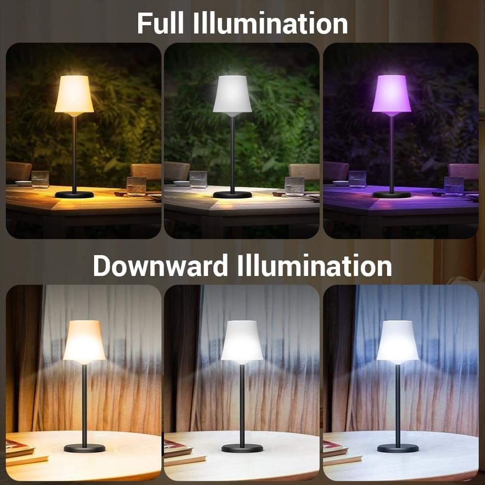 Beneficios del producto: Iluminación portátil y versátil para uso en interiores y exteriores con colores personalizables y control táctil conveniente
