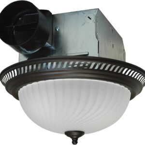 El ventilador de baño decorativo viene con una elegante parrilla (13-1/5,1 cm de diámetro) en acabado de níquel y lente de luz de vidrio esmerilado acanalado, dando a tu baño un brillo sofisticado e iluminador, junto con una distribución uniforme de la luz Funciona a 70 CFM a 4.0 scones, y viene con un collar redondo de 10,2 cm con amortiguador para un funcionamiento silencioso y protección contra corrientes de aire posteriores El ventilador de escape y la luz se pueden conectar para funcionar por separado Fácil instalación con soportes ajustables incluidos o pestañas de montaje de la carcasa Utiliza dos bombillas de base media tipo A19 de 60 vatios (no incluidas) Ventilador de baño con luz diseñado para aportar estilo a tu hogar Ventilador de 70 CFM a 4 sonos para un funcionamiento silencioso Capacidad de escape para habitaciones de aproximadamente 70 pies cuadrados Fácil instalación mediante el uso de los soportes colgantes ajustables incluidos Viene con una garantía limitada de 1 año 60 vatios 1.6 A