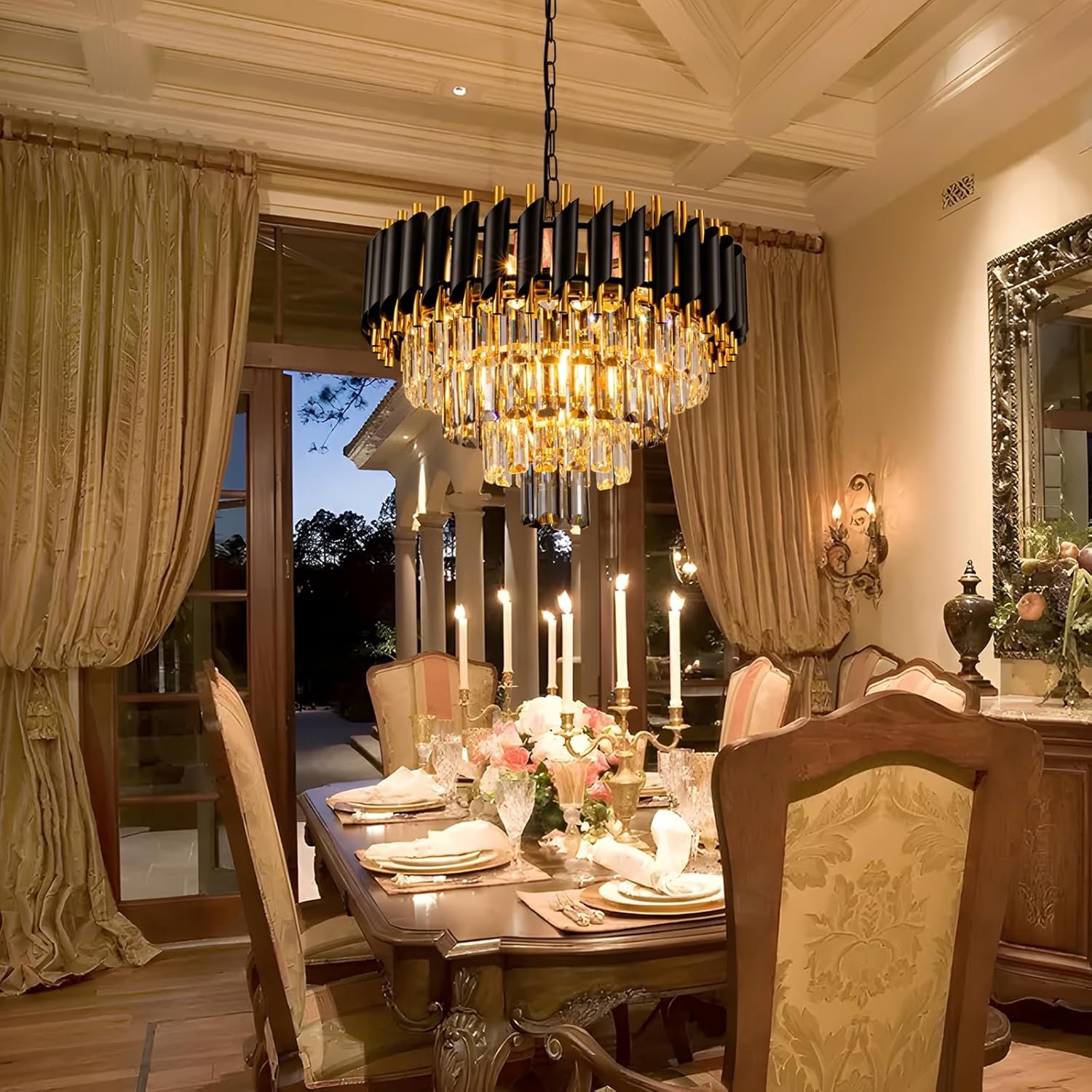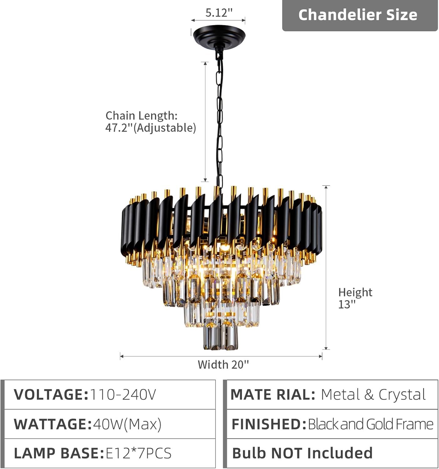 Lámpara de araña de cristal moderna Construida con cristales transparentes y gris ahumado, hierro metálico superior con pintura negra mate y dorada. Iluminación de lámpara de araña de cristal brillante de 4 niveles con diseño contemporáneo, perfecta para la decoración del hogar que hará que tu casa se vea impresionante. Interruptor Regulable y Soporte de Bombillas Este moderno candelabro redondo incluye función regulable, necesitas usarlo junto con un interruptor regulable y bombillas regulables (no incluidas), requiere 7 bombillas E12 (no incluidas) de 60W máximo para cada bombilla. Dimensiones: este candelabro de vestíbulo pesa 17 libras, W50,8 cm y H33,0 cm con cadena de metal ajustable, se puede ajustar a un máximo de 119,9 cm; cambiando la longitud de la cadena, se puede adaptar fácilmente a diferentes espacios de tu hogar, se adapta perfectamente a techos altos o techos más bajos, también se puede instalar en techo plano o techo inclinado. Candelabro de cristal de gota de lluvia: cristales K9 de alta calidad, cada una de las barras de cristal con corte de múltiples ángulos, hace que toda la lámpara de techo sea más impresionante y brillante, no importa cuando enciendes la luz o apagas la luz; el primer y tercer piso cuelgan cristales transparentes, y el segundo y cuarto piso cuelgan cristales gris ahumado. La alta calidad del marco mental hecho a mano puede asegurar que la construcción de la luz sea más duradera y antioxidante. Instalación fácil – El paquete incluye un conjunto completo de instrucciones detalladas de instalación y accesorios de hardware para su fácil instalación. Cualquier pregunta no dude en contactarnos.