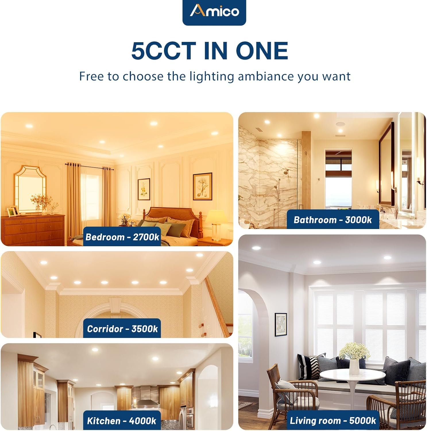 Amico 12 Pack 3 Inch 5CCT Ultra-Thin LED Recessed Ceiling Li