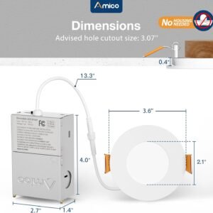 5 CCT-in-1: 5 color temperature(2700K, 3000K, 3500K, 4000K, 5000K) is selectable to you, which successfully eliminates the hassle of returning or exchange products due to inappropriate color temperature. Just slide the switch on the side of the J-box and you will get the most-desired color that best fit in your room type. IC Rated: Amico’s canless LED recessed light is IC rated, which is permitted to be in contact with insulations in ceilings, meaning the junction box is thermally protected. It only requires as small as 2 cm ceiling spaces, fits various ceilings, and joists. It won’t cause a fire in the roof or overhead joist space. Easy Install: The low profile recessed lighting is suitable for retrofit and new decoration: Cut a hole in ceiling with 1:1 hole template; Connect the Jbox to the cable; Use spring clip to fix it on the ceiling. Hassle-free, the installation can be completed in minutes. High Brightness: The 3cm slim downlights use the world’s leading LED chips with higher lumens and lower power. 500LM consumes 7 Watts, which equals to 40W halogen lamp, saving you up to 90% in energy costs. Amico Benefits: Its long lifespan also reduces maintenance costs. All Amico’s recessed lighting are certified by ETL of a high standard. Our customer support team will also address your concerns within 12 hours.