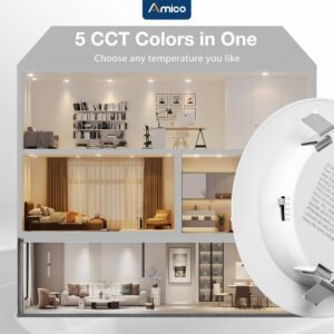 Colores seleccionables: las luces Amico pueden tener 5 temperaturas de color seleccionables, 2700K, 3000K, 4000K, 5000K, 6000K. No te preocupes por la temperatura de color comprar, evita la molestia de devolverlos o cambiarlos debido a la temperatura de color inadecuada. Instalación simple: le ahorra tiempo y costos de electricista. Las luces LED empotradas de 10,2 cm tienen una base universal E26 que hace que la instalación sea tan fácil como una bombilla, se puede instalar de forma independiente sin un electricista, y solo te llevará 3 minutos instalar una. Alto brillo: Nuestras luces led pueden utilizar los chips LED líderes del mundo con lúmenes más altos y menor potencia. 700LM consume 7 vatios, lo que equivale a luz halógena de 60 W, lo que te ahorra hasta un 90% en costos de energía. Protección ocular: El brillo de las luces planas led puede ajustarse suavemente del 10% al 100%, puede elegir el brillo más cómodo para sus ojos. Nota: Esta luz es compatible con la mayoría de los reguladores del mercado, excepto el regulador inteligente. Amplia aplicación: los downlights retrofit de Amico tienen clasificación de humedad y se pueden instalar en dormitorios, salas de estar, cocinas y pasillos, además de baños. Una amplia gama de aplicaciones ahorra la molestia de elegir varias luces.