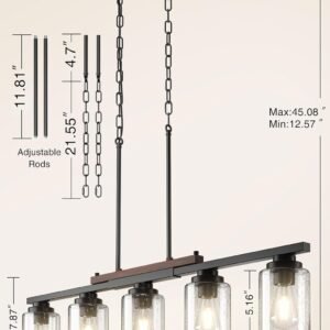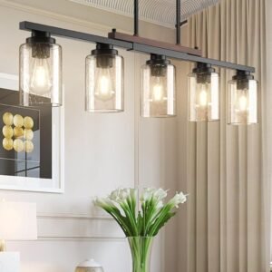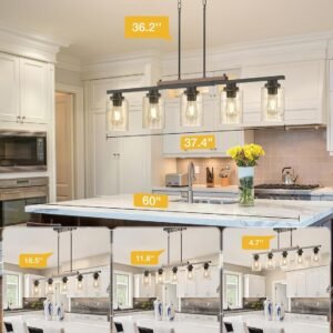 Elegante y duradero: Realza tu comedor con nuestra lámpara de araña de comedor, que presume un encanto moderno de granja que combina durabilidad y elegancia. Perfecto como luces colgantes sobre tu mesa de comedor o como luces de isla para cocina, su acabado galvanizado y con recubrimiento en polvo garantiza resistencia a la corrosión, mientras que su color de larga duración y certificación UL lo convierten en una adición elegante que resiste la prueba del tiempo Instalación en 10 minutos: montar esta lámpara de araña de comedor sobre la mesa puede ser fácil con nuestra guía clara, que simplifica cada paso y lo guía a través del proceso de montaje sin requerir ningún conocimiento eléctrico. En poco tiempo, tendrás tus lámparas de comedor sobre la mesa o tus luces de cocina encendidas y brillando intensamente Adaptado a tu espacio: logra el ajuste perfecto para tu decoración con dimensiones totalmente ajustables. Con una longitud máxima de suspensión de 114,5 cm y varias longitudes de varilla, puedes integrar perfectamente nuestras lámparas en tu espacio, ya sea como luces colgantes negras para la isla de la cocina o como pieza destacada en tu comedor. Compatible con bombilla E26: ilumina tus espacios de vida con bombillas base E26, desde LED hasta Edison, incandescentes, CFL y halógenas de hasta 60W. Mejora tu experiencia con bombillas regulables y que cambian de color, todo brillando a través de un exquisito vidrio semillado que proyecta impresionantes efectos de luz y ambientes. (Nota: las bombillas no están incluidas) Soporte de producto de 24 meses: Descanse tranquilo con nuestro completo programa de soporte de 24 meses. Estamos dedicados al servicio confiable y responderemos de forma proactiva en 24 horas, asegurando una experiencia de cliente perfecta. Si su pantalla llega rota o con piezas faltantes, contáctenos y estaremos disponibles las 24 horas del día, los 7 días de la semana para ayudar a resolver el problema.