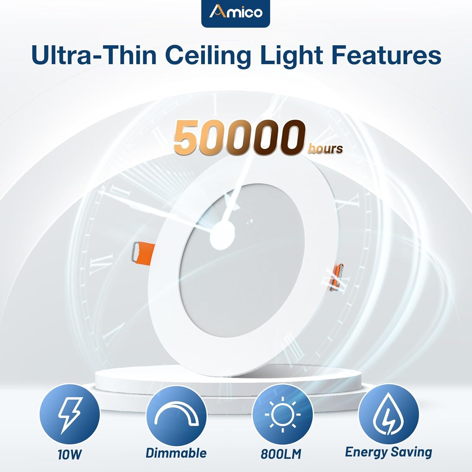 Iluminación empotrada LED de 5CCT de 10,2 cm: puedes elegir entre 5 temperaturas de color (2700K, 3000K, 3500K, 4000K, 5000K), lo que elimina con éxito la molestia de devolver o cambiar productos debido a una temperatura de color inapropiada. Simplemente desliza el interruptor en el lateral de la caja J y obtendrás el color más deseado que se ajuste a tu tipo de habitación. Luces LED de wafer delgadas con atenuación suave de 5CCT: Puedes ajustar fácilmente el brillo de las luces sin carcasa del 5% al 100% para obtener el brillo que resultará en un ambiente cómodo. Nota: Esta luz es compatible con la mayoría de los reguladores del mercado, excepto el regulador inteligente. Alto brillo Iluminación empotrada de 10,2 cm: El paquete de 6 luces delgadas regulables de 10,2 cm utilizan los chips LED líderes del mundo con más lúmenes y menor potencia. 800LM consume 10 vatios, lo que equivale a una lámpara halógena de 60 W, ahorrándote hasta un 90% en costos de energía al año. Clasificación IC: La iluminación LED empotrada sin caja de 10,2 cm de Amico tiene clasificación IC, lo que permite estar en contacto con aislamientos en techos, lo que significa que la caja de conexiones está térmicamente protegida. Solo requiere un espacio de techo tan pequeño como 5,1 cm. No tendrá riesgo de incendio cuando la luz se instale en varios techos y vigas superiores. Ventajas de Amico: Los downlights empotrados de Amico son aptos para zonas húmedas, adecuados para la instalación en dormitorios, salas de estar, cocinas, pasillos e incluso baños. Nuestra iluminación empotrada está certificada por ETL de alto nivel.