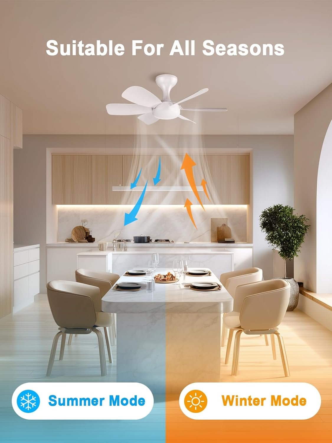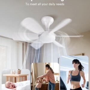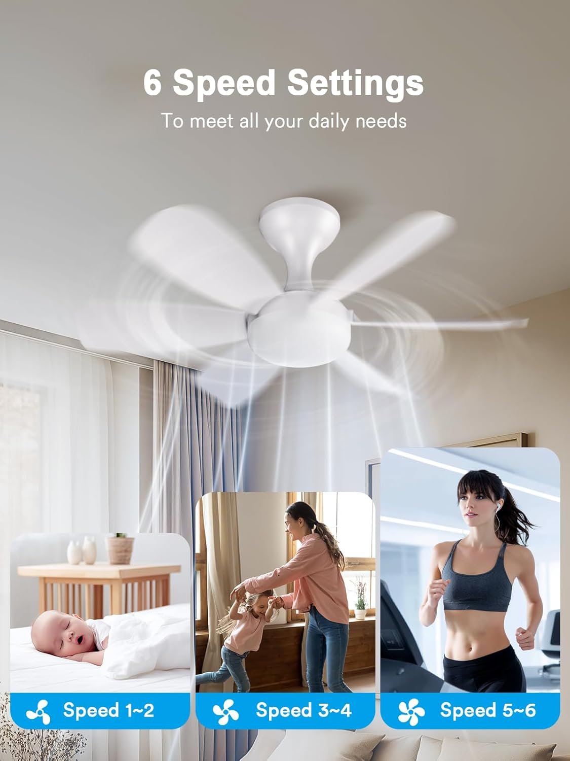 Ventilador de techo 2 en 1 con luz: este ventilador de techo 2 en 1 y luz LED combina un fuerte flujo de aire e iluminación brillante en una unidad elegante. El diseño moderno de bajo perfil con 6 aspas se adapta a comedores, cocinas, dormitorios, salas de estar y más. El ventilador y la luz funcionan de forma independiente para una comodidad e iluminación totalmente personalizables. 6 velocidades de ventilador y funcionamiento ultra silencioso: disfruta de una comodidad personalizada con 6 velocidades de ventilador para cualquier temporada. Utilice la rotación hacia adelante (1 6) para el enfriamiento de verano o hacia atrás (1 3) para hacer circular el aire caliente en invierno. Elige un viento cómodo estable o un viento natural suave. A su velocidad más baja, el ventilador funciona tan silenciosamente como 32dB, perfecto para dormitorios y guarderías. Iluminación personalizable: personalice su iluminación para que coincida con cualquier estado de ánimo o entorno con una luz LED brillante de 1000 lúmenes. Ajusta fácilmente la temperatura de color de blanco cálido (3000 K) a luz diurna fría (6500 K), y ajusta el brillo del 0% al 100%. Ya sea que estés leyendo, relajándote o trabajando, esta luz de ventilador se adapta a tu estilo de vida y preferencias de iluminación. Aplicación inteligente y control remoto: Controla tu ventilador y luz a través de la aplicación móvil inteligente o el control remoto incluido. Ajusta fácilmente la velocidad del ventilador, el brillo y la temperatura de color a tu gusto. El control remoto cuenta con un temporizador integrado de 2 horas para apagado automático, mientras que los ajustes de memoria restauran tus últimas preferencias utilizadas. Inteligente, simple y hecho para una comodidad sin esfuerzo. Fácil instalación: con un diseño elegante y de bajo perfil, esta lámpara de ventilador de techo se adapta perfectamente a cualquier espacio moderno. La instalación es sencilla con herramientas básicas: monta la base, conecta el cable de seguridad, cableálo y aprieta los tornillos. Se incluye un manual detallado para ayudarte a completar la configuración de forma rápida y segura.