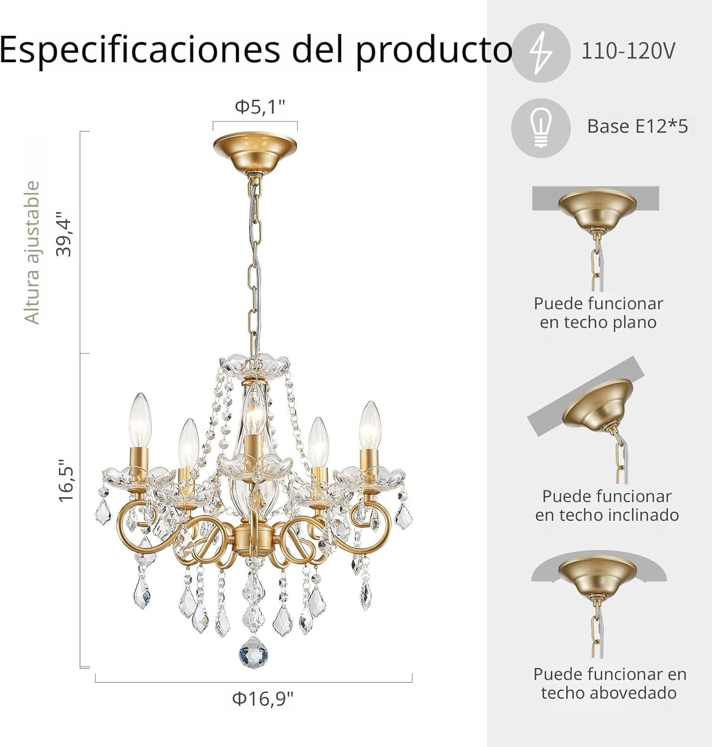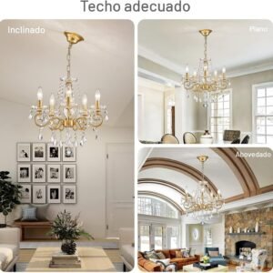 Diseño único de vidrio de cristal: nunca se cae, nunca se desvanece. Este estilo único de tubo de araña de cristal con lámpara de cristal como característica, los candelabros dorados están adornados con numerosos colgantes de cristal de alta transparencia, añadiendo encanto y atractivo general a la araña para el dormitorio. Verá el hermoso efecto de iluminación en el techo cuando encienda la luz. Habitación sugerida: el candelabro de cristal dorado es un complemento perfecto para cualquier espacio y funciona con diferentes estilos de decoración. Añade un ambiente cálido y crea un atractivo efecto de iluminación en todo el techo. Se recomienda usar en sala de estar, comedor, isla de cocina, dormitorio, entrada, pasillo, baño, hotel, etc. Dimensión perfecta: los candelabros de cristal para comedor miden 42,9 cm de diámetro x 41,9 cm de alto, la cadena de 100,1 cm es ajustable en altura, puedes colgar esta lámpara como lámpara de techo semiempotrada; o como candelabro para entrada ajustando la longitud de la cadena, se ajusta perfectamente a tu techo alto o techo inferior y compatible con techos planos, inclinados e inclinados. Bombillas adaptables E12: La moderna lámpara de araña de cristal utiliza bombillas E12 doradas en forma de candelabro (máximo 60W/bombilla), que son compatibles con bombillas LED, incandescentes, halógenas y otros tipos de bombillas. Puedes combinar diferentes formas y temperaturas de color de las bombillas para crear la atmósfera adecuada de acuerdo con las diferentes actividades. Fácil instalación y servicio atento: La pequeña lámpara de araña de cristal requiere montaje, pero nuestra página de producto tiene un video de instalación que es fácil de instalar y viene con instrucciones de instalación detalladas y todos los accesorios necesarios. Se necesita tiempo y esfuerzo para colgar el cristal, pero es fácil de instalar. Si tienes alguna pregunta o problema después de recibir el producto o la instalación, no te preocupes y no dudes en ponerte en contacto con nosotros por correo electrónico de Amazon.