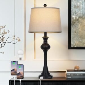 La lámpara de escritorio tiene un diseño único, clásico sin perder modernidad. La lámpara de escritorio moderna diseñada con pantalla ajustable Brazos giratorios de 270°: Los brazos giratorios de metal permiten un ajuste sin problemas de la luz para adaptarse a tus necesidades específicas de iluminación. Simplemente ajusta los ángulos, y el brazo de metal resistente mantendrá de manera segura la posición deseada, y es especialmente adecuado como tus lámparas de trabajo, luz de lectura para tu mesita de noche y velador Las lámparas de escritorio para oficina en casa tienen puertos de carga duales (tipo C, USB 2.0): carga fácilmente tu dispositivo móvil mientras usas la lámpara de escritorio con dos puertos de carga, compatible con conexiones tipo C y USB 2.0. La lámpara de lectura de cabecera tiene un cargador USB integrado. Lámpara de lectura cálida y eficiencia energética: la lámpara de lectura de cabecera cuenta con un LED integrado de 4.5 vatios con una temperatura de color relajante de 3000 K, proporcionando una iluminación cálida y cómoda para sus necesidades de lectura y oficina en casa. Nuestras resistentes bombillas LED seguirán durando varios años; nuestras bombillas LED de alta calidad son una actualización de ahorro de energía respecto a las bombillas incandescentes estándar Lámpara de metal: hecha de metal de alta calidad, nuestra lámpara de escritorio ofrece una durabilidad sin igual y elegancia atemporal. El interruptor mecánico basculante en la base garantiza la facilidad de uso, fabricado con metal de alta calidad que crea un aspecto moderno. La base es un diseño de base de metal de alta calidad para crear una hermosa apariencia de lámpara de escritorio. La calidad de la lámpara le permite ser duradera y elegante, un hermoso accesorio para la habitación de uno. Construcción de calidad: lámparas de escritorio Anxingtoos diseñadas para iluminar tu hogar, elegante adición a cualquier habitación; bombillas LED incluidas y nuestras lámparas también se adaptan a bombillas estándar Listado por ETL y cumple con los estándares UL de 120 voltios para seguridad y calidad