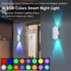 Luz nocturna con sensor de movimiento: esta luz nocturna con sensor inteligente cuenta con un sistema de triple sensor (movimiento, luz, sensibilidad) con ángulo de detección de 120° y rango de 16.4 ft para una cobertura completa. La luz nocturna recargable con sensor de movimiento tiene 3 modos de iluminación incorporados, modo cmOn cm – siempre encendido; modo cmOFF cm – siempre apagado; modo cmautomático cm – se enciende automáticamente cuando se detecta movimiento en la oscuridad y se apaga después de 15 segundos de inactividad, lo que ayuda a minimizar el consumo de energía. 16 colores RGB y 4 modos dinámicos: la luz nocturna ofrece 16 colores (15 colores RGB vibrantes y color blanco) y 4 efectos de iluminación dinámicos, perfectos para crear atmósferas fascinantes. De amarillo cálido, rojo apasionado, azul vibrante, puedes cambiar fácilmente. Controla sin esfuerzo la luz del sensor de movimiento en interiores de hasta 3 a 16.4 ft de distancia utilizando el control remoto incluido o haz clic en la luz, por lo que es conveniente y fácil de usar en cualquier lugar de tu hogar. Principalmente puedes ajustar el brillo requerido de cualquier color por el control remoto (el control remoto requiere 2 pilas AAA, no incluidas) Instalación magnética: este aplique de pared adhesivo cuenta con un imán fuerte y adhesivo 3M para un fácil montaje sin otras herramientas adicionales y soporta una rotación libre de 360°. Fácil de desmontar y mover libremente, por lo que es particularmente adecuado para inquilinos o usuarios que regulan con frecuencia el diseño de su hogar. La instalación se puede completar en 10 segundos. Batería recargable de larga duración: equipada con una batería recargable de 1500 mAh, nuestra lámpara de pared recargable puede funcionar hasta 4 meses (modo de detección) con una sola carga de 3 horas, eliminando la necesidad de carga frecuente, ahorro de energía y protección del medio ambiente, diciendo adiós al problema de la carga frecuente. La lámpara de pared inalámbrica portátil con puerto de carga USB tipo C, ya sea utilizada como luz nocturna de pasillo, luz de baño o luz de escalera en interiores, el efecto visual es increíble. Versátil para espacios interiores y exteriores: la colorida luz nocturna con sensor de movimiento está hecha de material ABS duradero y a prueba de humedad, buena estabilidad y larga duración. Ideal para dormitorios, cocinas, garajes, patios, pasillos o entradas.