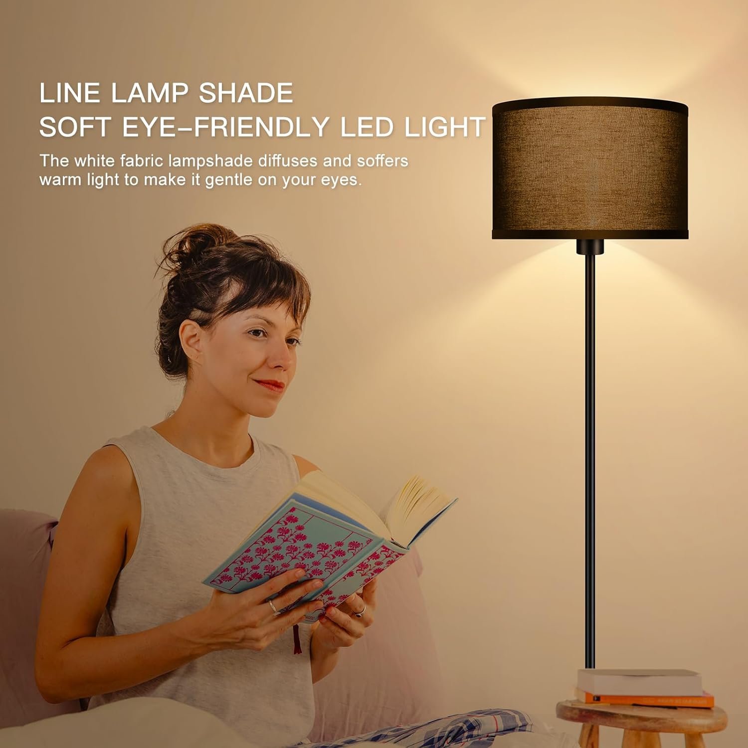 Pantalla negra de la lámpara de pie: esta moderna lámpara de pie AUQUEE está hecha de metal de alta calidad para una alta estabilidad y larga durabilidad. Viene con una pantalla de lino negra para evitar la exposición directa de la luz a tus ojos. Como lámpara de esquina para leer, lámpara de sofá para la sala de estar, lámpara de pie para oficina en el hogar, altura ideal para una silla de lectura al leer un libro, perfecta como regalo para tu hijo e hija. Lámparas de pie modernas: esta lámpara de pie moderna de 149,9 cm cuenta con un tubo de poste de metal negro y pantalla de lámpara negra, diseño elegante que combina tanto con la decoración moderna como de mediados de siglo, mientras añade un diseño elegante a tu hogar. Esta lámpara de pie contemporánea con diseño minimalista ocupa poco espacio, pero puede crear un ambiente de iluminación cálido en tu sala de estar, dormitorio, estudio. Se adapta perfectamente a los estilos modernos, simples, boho, de granja, americanos, europeos, nórdicos y otros estilos de decoración. Lámpara de pie sin bombilla: puedes usar la iluminación de bombilla con diferentes niveles de brillo de cualquier bombilla de base E26, lo que reducirá las facturas de electricidad y los costos de mantenimiento en comparación con las bombillas incandescentes, ahorrando energía y dinero; Además de decorar tu hogar, también puedes ahorrar en tus facturas con una bombilla LED reemplazable. Esta lámpara de lectura emite una suave iluminación blanca cálida que crea un ambiente impresionante para una relajación y lectura instantáneas. Compatible con enchufes inteligentes: puedes conectar esta lámpara de pie para sala de estar moderna en el enchufe inteligente (no incluido), para que pueda conectarse con Alexa u otros dispositivos inteligentes de wifi para el hogar, lo que mejorará tu experiencia de iluminación en el hogar y facilitará tu vida. Si tienes alguna sugerencia o pregunta sobre nuestras lámparas de pie, ofrecemos devolución o cambio sin complicaciones. Fácil de montar y usar: con el montaje simple, solo necesitas enroscar correctamente los hilos, luego girar los postes juntos, insertarlos en la base y configurar el montaje de la pantalla de la lámpara. Gracias al cable de alimentación de 6 pies que te permite colocar esta pequeña lámpara de pie junto a tu sofá, mesitas de noche, mesas auxiliares y cualquier otro lugar que la necesites sin necesidad de herramientas. La base pesada evita que la lámpara de pie se vuelque o se caiga cuando se la golpea y el interruptor de pie liberará tu mano.