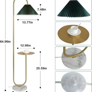 Lámpara de pie con bandeja: Conveniente para almacenar productos mientras esta lámpara de pie está encendida, la clásica lámpara de pie tiene una mesa con bandeja funcional que puede sostener tu teléfono, llaves, auriculares, billetera, una revista, un libro o una taza de té/café. La lámpara de pie alta creará más espacio para usar en tu habitación, ya que no necesitarás una mesa auxiliar adicional, es un buen regalo para tus amigos, familiares y amantes. Lámpara de pie moderna y elegante, con diseño moderno y hermoso, es adecuada para tu sala de estar, comedor, estudio y dormitorio. Es muy adecuado para la lectura y la decoración del hogar. La pantalla de tela plegada verde oscuro filtra la luz cálida de manera uniforme. La luz suave puede iluminar el libro y proteger tu vista al mismo tiempo. Esta moderna lámpara de pie adopta un interruptor de pie, lo que permite a los usuarios liberar sus manos y encender/apagar esta lámpara de pie glamorosa más convenientemente, reforzar la base y el poste de la lámpara de metal, lo que hace que esta lámpara de pie contemporánea tenga una fuerte estabilidad y vida útil. Esta lámpara de pie tiene un montaje simple y una instalación fácil, para esta lámpara de pie simple puedes instalarla en solo unos minutos, y todos los accesorios de montaje y un manual de instrucciones de montaje detallado están incluidos, usa una bombilla de máximo 40 vatios y cuenta con un zócalo E26. Creemos firmemente en la calidad del producto. Ofrecemos una garantía de calidad completa de 24 meses, 60 días de reembolso por calidad. Si no estás satisfecho con nuestros productos o tu pantalla de lámpara rota, no dudes en ponerte en contacto con nosotros. Nuestro propósito de servicio es satisfacer a los clientes.