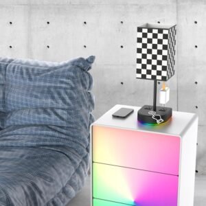 Inspiración del diseño: desde tablero de ajedrez blanco y negro, la lámpara de noche está equipada con base negra y pantalla de tablero de ajedrez, la iluminación puede crear atmósfera, aumentar la decoración de la habitación y proporcionar una iluminación brillante, equipada con interruptor táctil inalámbrico todo apuntando. Lámpara de noche táctil con 3 modos de color: puedes encender/apagar/alternar rápidamente la luz (luz blanca, luz cálida, luz neutra) tocando la base. Muy fácil de controlar, adecuado para su uso a cualquier edad. Cambia las diferentes temperaturas de color para satisfacer las necesidades de lectura e iluminación ambiental. La base está equipada con luz de atmósfera RGB y pulsa el interruptor para apagar la luz de atmósfera base Incluye bombillas LED de bajo consumo: no necesitas comprar bombillas, ya has preparado bombillas LED E26 de 12 W de bajo consumo. Combinado con pantallas a cuadros en blanco y negro para crear un ambiente cálido y romántico. Luces con 2 tomas de CA: 2 enchufes de CA le facilitan la conexión y desenchufe el cargador en cualquier momento, cargando sus dos dispositivos y su teléfono móvil al mismo tiempo. Tabletas, computadoras portátiles, iPad, iPhone y otras cargas, sin necesidad de poner otro enchufe en el escritorio, lo que afecta la apariencia. Puedes obtener una base estable, pantalla de tablero de ajedrez individual, bombilla tricolor E26-12w, cable de alimentación de 1.5 mAC. Si tienes alguna idea o insatisfacción con esta lámpara de noche, no dudes en ponerte en contacto con nosotros y el equipo de servicio al cliente te dará una respuesta satisfactoria.
