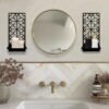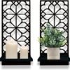 Mural retro minimalista: el arte de pared de línea retro negra es perfecto para la decoración del hogar, complementando espejos, relojes, pinturas al óleo y otras decoraciones del hogar perfectamente. Los candelabros añaden un toque artístico a tus escaleras, ventanas, entrada, pasillo, chimeneas u otros espacios de pared Habitaciones adecuadas: estos estantes decorativos únicos de granja hacen que las paredes de la habitación sean interesantes y atraen la atención de la gente. Se puede utilizar para decorar paredes en blanco en baños, comedores, cocinas y dormitorios. ¡Los estantes de arte te traerán sorpresas! No requiere montaje: el marco de metal de pequeña capa está hecho de tableros de capas plegados y no requiere montaje. Es resistente cuando se despliega y puede exhibir perfectamente velas, plantas artificiales, suculentas, jarrones, velas de té, coleccionables u otros artículos decorativos. Duradero y resistente: nuestros apliques de vela han sido sometidos a un tratamiento de prevención de óxido, con una superficie lisa que se puede utilizar repetidamente y no se rompe ni deforma fácilmente. Fácil de colgar: el juego de 2 portavelas de pared incluye los accesorios necesarios para colgar. Simplemente taladre agujeros en la pared de acuerdo con los agujeros reservados y bloquee los tornillos para completar el colgado.