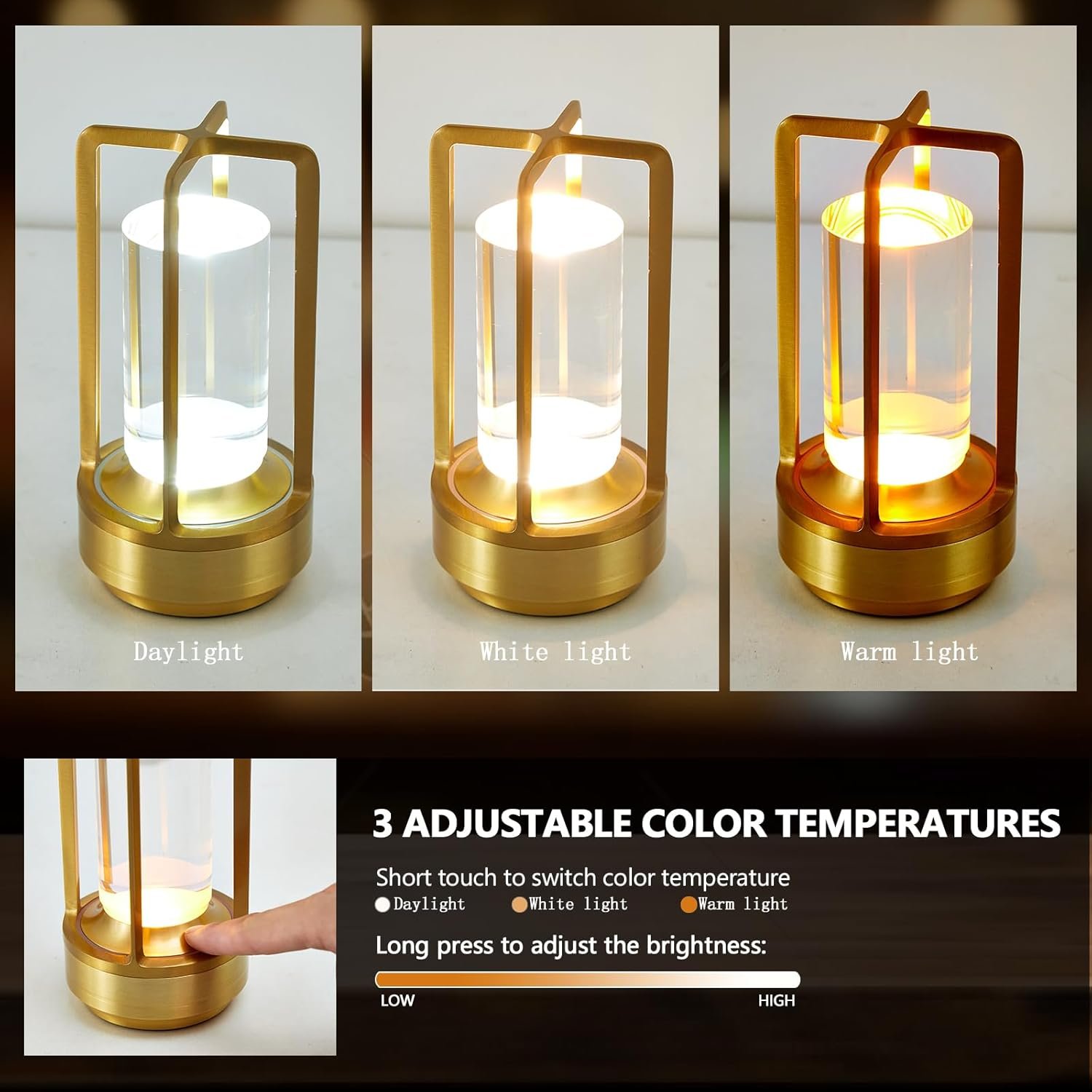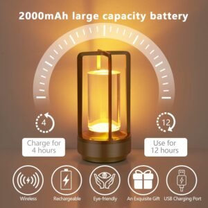 Diseño único, función potente: esta lámpara combina un marco de aluminio minimalista y un pilar guía de luz acrílica distintivo, un diseño raro que ofrece una luz perfectamente uniforme y suave. Es una pieza de decoración llamativa y una fuente de iluminación altamente funcional Recargable y sin cables: Disfruta de la máxima flexibilidad al colocar esta lámpara portátil en cualquier lugar sin necesidad de una toma de corriente. Perfecto para escritorios, comedores, entradas, habitaciones infantiles, oficinas o actividades al aire libre como acampar y hacer picnics 3 colores y atenuación suave: simplemente toque para cambiar entre blanco cálido, fresco y luz diurna. Presiona durante mucho tiempo para atenuar suavemente de un brillo suave a brillo completo. Establece la luz ideal para leer, trabajar, relajarse o como una suave luz nocturna Dura 12-24 horas en uso real – Proporciona un total de 12 horas al máximo brillo o unas impresionantes 24 horas en configuración media. Una carga mantiene la lámpara encendida toda la noche y hasta el día siguiente Función de memoria inteligente: cada modo de color recuerda su último ajuste de brillo. Cambie entre blanco cálido, natural y frío sin necesidad de volver a ajustar, ahorrándole tiempo y molestias
