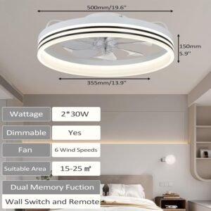 Cainjiazh Ventiladores de Techo con Luces de 20″ Fande
