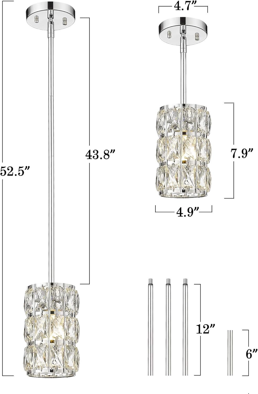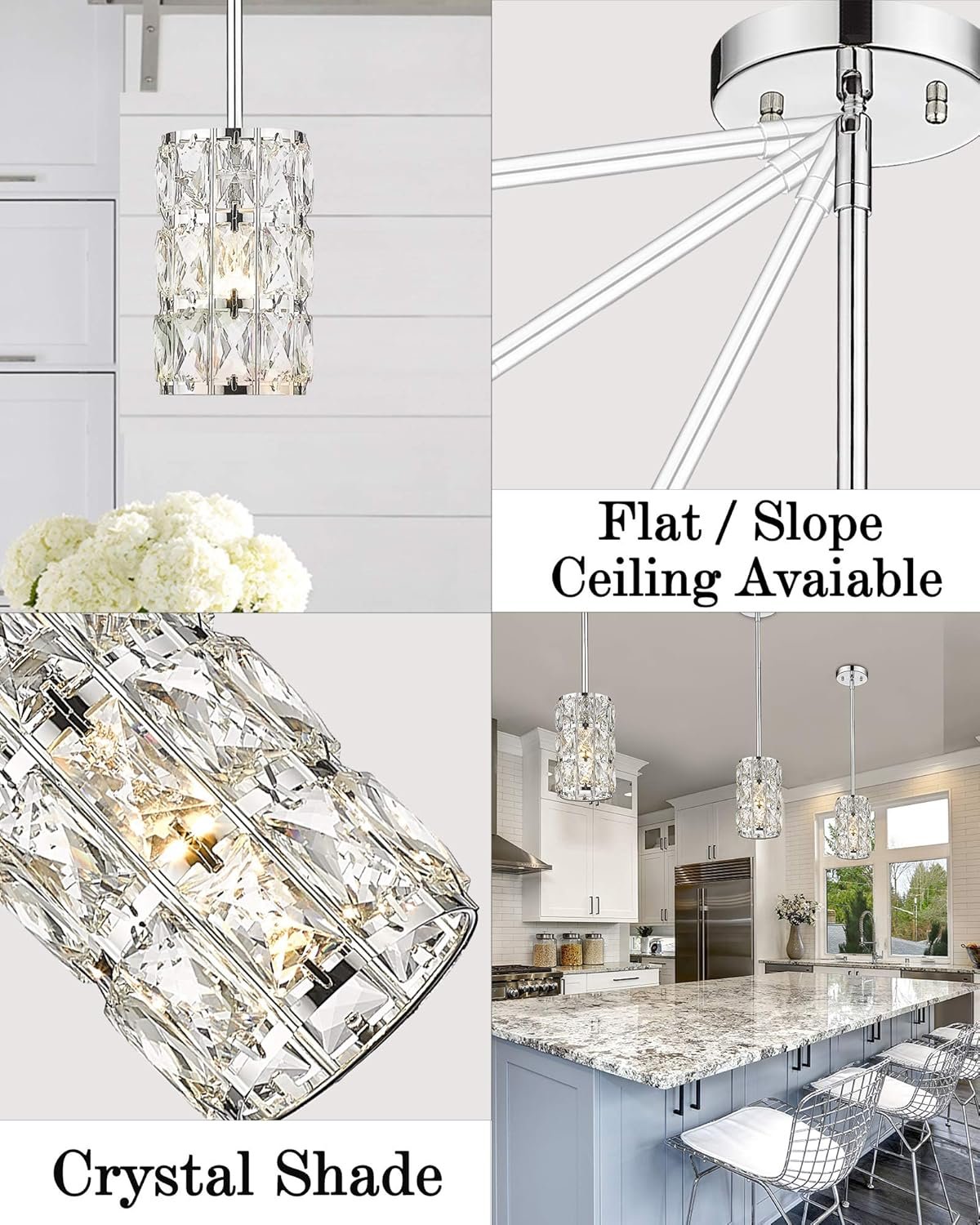 Diseño inspirado: esta mini lámpara colgante es la combinación perfecta de metal y cristal en acabado cromado, que aporta un atractivo encanto industrial retro y moderno, combina con la mayoría de estilos de muebles y añade una hermosa decoración a tu hogar. Dimensiones: la iluminación colgante de cristal cerca del techo es con total: 12,4 cm x 12,4 cm x 20,1 cm (largo x ancho x alto); toldo de techo: 11,9 cm de diámetro. 110-120V CA cableado. Todos los accesorios de montaje están incluidos para una instalación rápida y fácil. Requisitos de bombilla: esta luz de cristal requiere 1 bombilla de base E26, 60 W máx. Totalmente regulable cuando se utiliza con una bombilla regulable e interruptor de atenuación (bombilla e interruptor de atenuación no incluidos). Altura ajustable: con varillas ajustables de 2,5 cm x 15,2 cm y 7,6 cm x 30,5 cm, la lámpara colgante de granja se puede ajustar de 16.5 a 133,3 cm fácilmente. Perfecto para sala de estar, comedor, isla de cocina, cocina, dormitorio, cafetería, etc. Soporte posventa: proporcionamos el mejor servicio al cliente. Reembolso 100%/reemplazo para cualquier problema de calidad. Si tienes alguna pregunta sobre la mini iluminación colgante, no dudes en ponerte en contacto con nosotros.