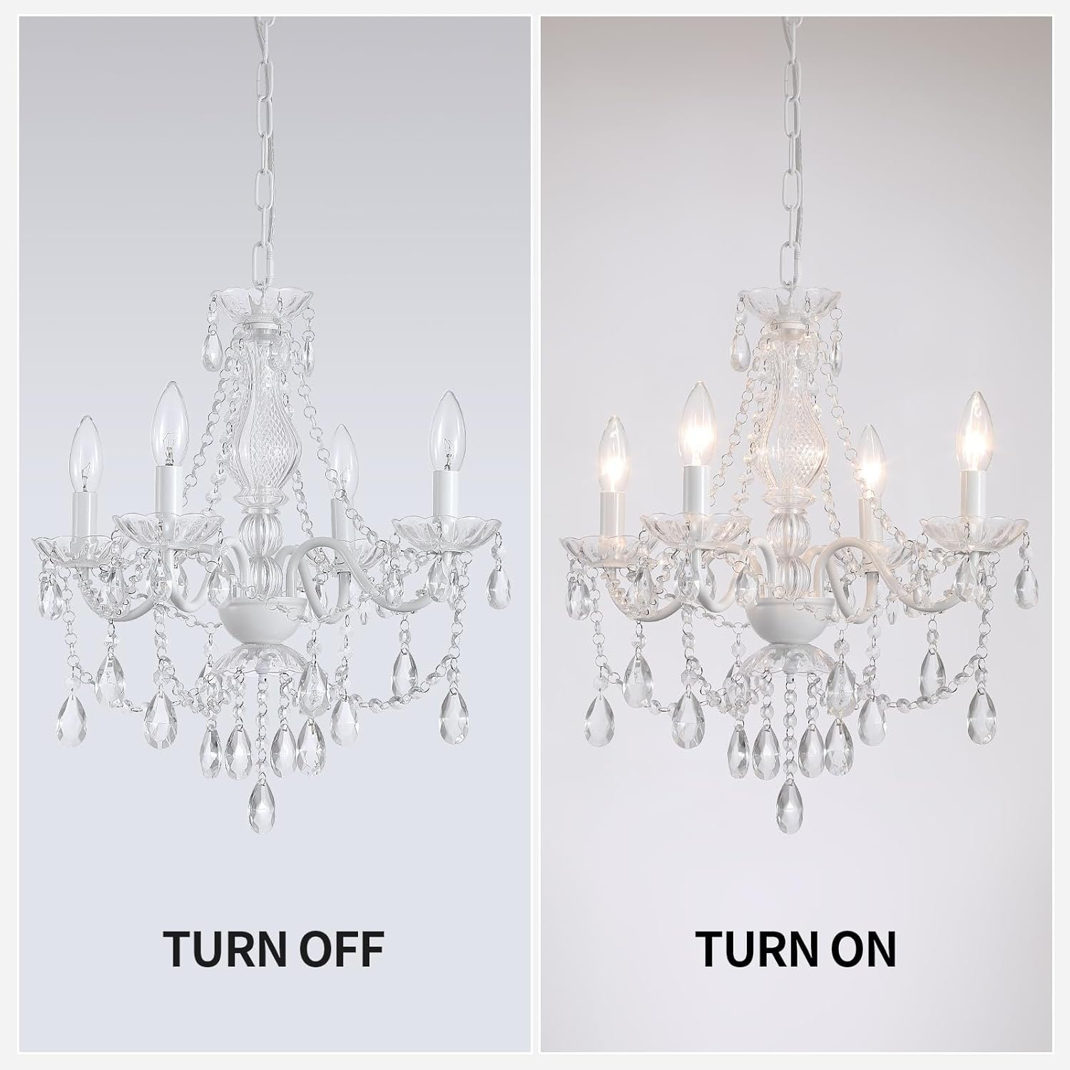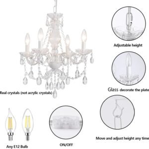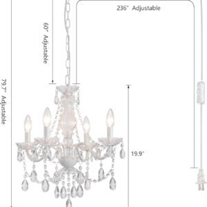 Lámpara colgante de cristal (¡No de cristal acrílico!! Esta lámpara de araña enchufable de cristal blanco está decorada con cadenas de cristal acrílico de alta calidad y cristales blancos de cerámica, lo que hace que esta lámpara de cristal sea más distintiva. El cristal real se ve mejor que el cristal acrílico, la luz será más hermosa cuando se refracta, la claridad y transparencia de la lámpara de araña de cristal son mejores, texturizada, de alta calidad, y el cristal real no es fácil de romper. Iluminación perfecta: el candelabro rosa se puede equipar con 4 bombillas E12 (regulables) de 40 W (bombillas no incluidas). Los candelabros de granja emiten suficiente luz; si usas lámparas enchufables en espacios grandes, como cocinas grandes, salas de estar grandes, islas grandes, recomiendo instalar dos o tres candelabros de cristal blanco cerámico, para que puedas disfrutar de las hermosas luces de los candelabros blancos y blancos cerámicos, lámparas enchufables de cristal blanco, adecuadas para habitaciones de niñas, pasillos cálidos, candelabros para guarderías, pasillos, dormitorios, salas de estar, comedores, cocinas, bares, hoteles, balcones, huecos de escalera, pasillos de habitaciones infantiles, habitaciones infantiles o espacios pequeños. Altura y movimiento ajustables: 50,5 cm de largo x 46,0 cm de ancho x 202,4 cm de alto (altura ajustable 151,9 cm), cable de luz colgante de cristal de 599,4 cm (19 pies) de largo, puedes moverla donde quieras o ajustar a la altura que desees, es tan conveniente que ni siquiera necesitas un electricista, hazlo tú mismo. Fácil de armar: Solo necesitas ajustar el brazo mecánico del enchufe cerámico en la lámpara de araña de cristal blanco, instalar el colgante decorativo de cristal, ajustar la altura de la lámpara de araña de cristal blanco y colocar los cables, es muy simple, se puede hacer directamente sin un electricista (puedes ver el video de instalación), y es compatible con interruptores de atenuación. Atención al Cliente: Si tienes algún problema durante el proceso de instalación o compra, nuestro equipo de atención al cliente está aquí para ayudarte. Simplemente envíenos un mensaje y le responderemos con prontitud.