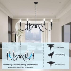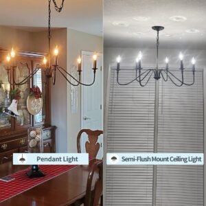 Este candelabro clásico tiene 6 elegantes brazos y un acabado negro mate. Es un diseño simple que proporciona un ambiente encantador y elegante. Este candelabro negro es ajustable y se puede utilizar en una variedad de espacios. Es perfecto para pasillos, comedores y vestíbulos. Las dimensiones de este candelabro son de 87,9 cm de diámetro y 38,0 cm de altura. La longitud de la cadena es de 120,0 cm. Esta lámpara de araña de estilo rústico totalmente regulable con un interruptor de atenuación compatible y bombillas regulables para crear el ambiente perfecto que te hace sentir cómodo (interruptor de atenuación no incluido). Esta lámpara de araña es fácil de montar e instalar. Todos los accesorios necesarios están incluidos, y la lámpara de araña está precableada y preroscada. Una vez que lo hayas instalado, puedes empezar a disfrutarlo. Esta lámpara es compatible con bombillas incandescentes, LED, CFL y halógenas. La bombilla de la imagen se vende por separado. Enchufes E12 (40 W máximo)