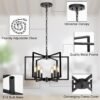 Estilo y diseño: este candelabro negro cuenta con 6 marcos geométricos cuadrados de metal, cada uno equipado con un portalámparas. Cuando está desplegado, se asemeja a una flor floreciente. Artística y atractiva, añadiendo un toque de estilo elegante a la decoración de tu hogar. Se puede combinar perfectamente en cualquier lugar como dormitorio, sala de estar, baño, comedor, pasillo, escalera, isla de cocina (solo para uso en interiores). Fácil instalación: esta lámpara de araña de estilo rústico viene premontada al 65% para tu comodidad. Simplemente coloca los brazos restantes de la lámpara, asegura las cubiertas y ¡listo! Perfecto para un divertido proyecto de bricolaje con familiares y amigos. Consulta el video de instalación visual en la página del producto para obtener tu guía rápida y evitar omisiones en la instalación. Marco de metal duradero: fabricado con un marco de metal mate de alta calidad y una base resistente al calor, esta lámpara de techo industrial garantiza una durabilidad duradera y una excelente protección de la bombilla. La pintura en aerosol negra resistente al óxido evita la decoloración y el envejecimiento, garantizando un aspecto atemporal y una vida útil prolongada para la lámpara. Altura ajustable: la longitud ajustable de la cadena varía de 64,0 cm a 155,4 cm. Consta de varios bucles de metal desmontables, este candelabro de comedor puede ser lo suficientemente flexible como para ajustar la altura a tus necesidades. Además, la lámpara de araña moderna se puede instalar en techos planos, inclinados y abovedados. Requisito de bombilla: Esta lámpara para comedor viene con 6 portabombillas E12, compatible con cualquier bombilla E12 como LED, incandescente y halógena, CFL, 60 W máx. para cada base (bombilla no incluida). Puedes elegir tus bombillas favoritas para crear el ambiente deseado. La luz colgante se puede atenuar con bombillas compatibles y un interruptor de atenuación (interruptor no incluido).
