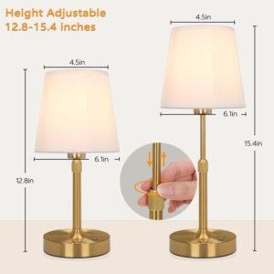 Lámpara de mesa ajustable en altura: la lámpara de noche cuenta con una función de ajuste de altura con un rango de 12.8-39,1 cm que le permite personalizar la altura de acuerdo con los escenarios de uso o necesidades. Lámpara LED de diseño portátil: la lámpara LED inalámbrica cuenta con portabilidad alimentada por batería, eliminando el desorden de cables con su diseño sin enredos. Se puede colocar cómodamente en cualquier lugar. Funciona con batería recargable de 5200 mAh: Esta lámpara de escritorio recargable con batería cuenta con una batería de alta capacidad de 5200 mAh incorporada con 6-7 horas de tiempo de carga. Se puede utilizar durante aproximadamente 14 horas en el estado más brillante y 24-40 horas en el estado más oscuro. Para aquellos que viven en áreas propensas a tormentas que causan cortes de electricidad, tiene una vida muy larga en la carga de la masa. Lámpara táctil de atenuación continua: Nuestra luz nocturna cuenta con un panel base sensible al tacto. Simplemente toca para encender/apagar, o pulsa durante mucho tiempo para ajustar sin problemas los niveles de brillo, proporciona una luz cálida suave y acogedora de 2700 K que se puede ajustar del 10% al 100%. Uso versátil: esta es una lámpara portátil que funciona con pilas que se puede mover a cualquier lugar. Perfecto para dormitorios, cocinas, salas de estar y comedores. También es ideal para uso al aire libre en patios, viajes de campamento o iluminación de emergencia durante cortes de energía.