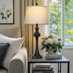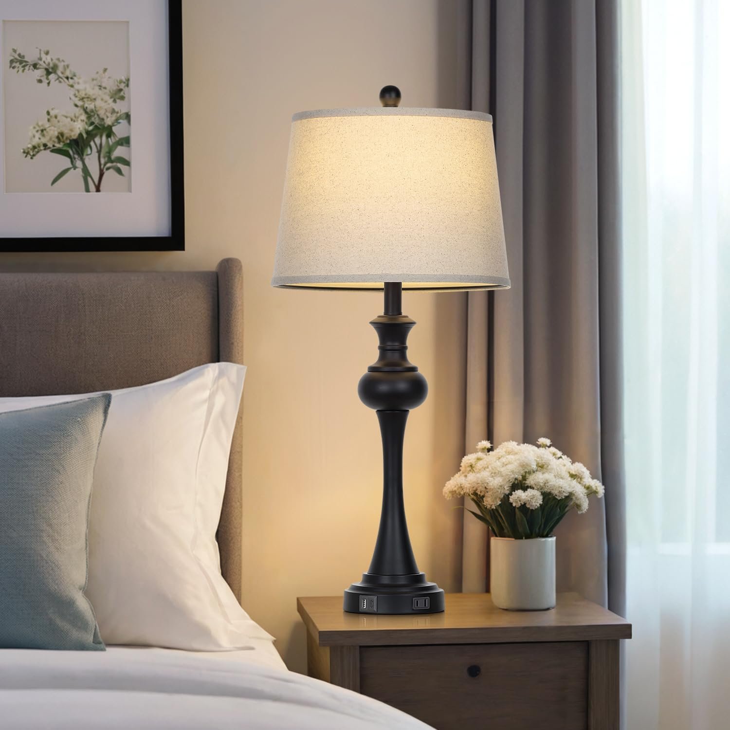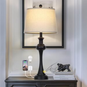 Lámparas de mesa modernas: Las lámparas altas para sala de estar están construidas con cuerpo negro de alta calidad y pantallas de lámpara color beige que proporcionan una sensación estética moderna. Las modernas lámparas de mesa son perfectas para salas de estar, dormitorios, mesita de noche, cafeterías, pasillos, restaurantes, etc. Aporta un ambiente cálido y hermoso a una habitación. Práctico puerto de carga USB: cada lámpara de mesa negra tiene un práctico puerto de carga USB A+C ubicado en la base de la lámpara y funciona tanto si la lámpara del dormitorio está encendida como apagada. Puedes cargar tus teléfonos móviles, tabletas, lectores Kindle y otros dispositivos electrónicos cuando estás en el trabajo o en el sueño. La lámpara de mesita de noche Cinyirong añadirá más comodidad a tu vida. Lámparas táctiles regulables de 3 vías: nuestras lámparas para mesita de noche están diseñadas con tres niveles de brillo para satisfacer tus diferentes necesidades de iluminación. Ya sea que desees un brillo suave para una noche tranquila de sueño, un haz luminoso para un trabajo enfocado, esta lámpara de dormitorio te tiene cubierto. Bombilla LED E26 incluida: No hay necesidad de preocuparse por comprar bombillas separadas para estas lámparas de mesa para sala de estar. 800 lúmenes, 2700 K, con una vida útil de 25.000 horas, ahorrará hasta un 90% de energía. Lámparas de mesita Sin parpadeo y sin deslumbramiento, protege eficazmente tus ojos con una iluminación suave. Servicio honesto: la moderna lámpara de mesa negra viene con 1 año de posventa. Estamos 100% dedicados a tu completa satisfacción con nuestra lámpara de mesa para dormitorio.