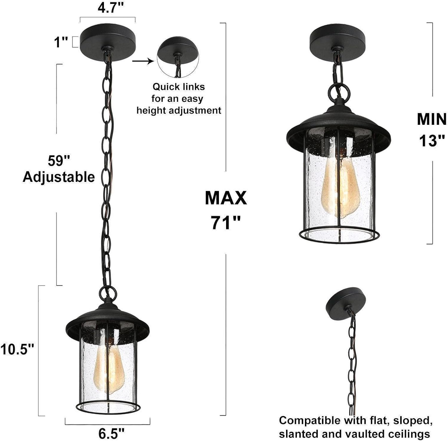 Componentes incluidos: Lámpara colgante negra para exteriores, Manual de usuario detallado, Todos los accesorios de montaje, Todos los accesorios de montaje.