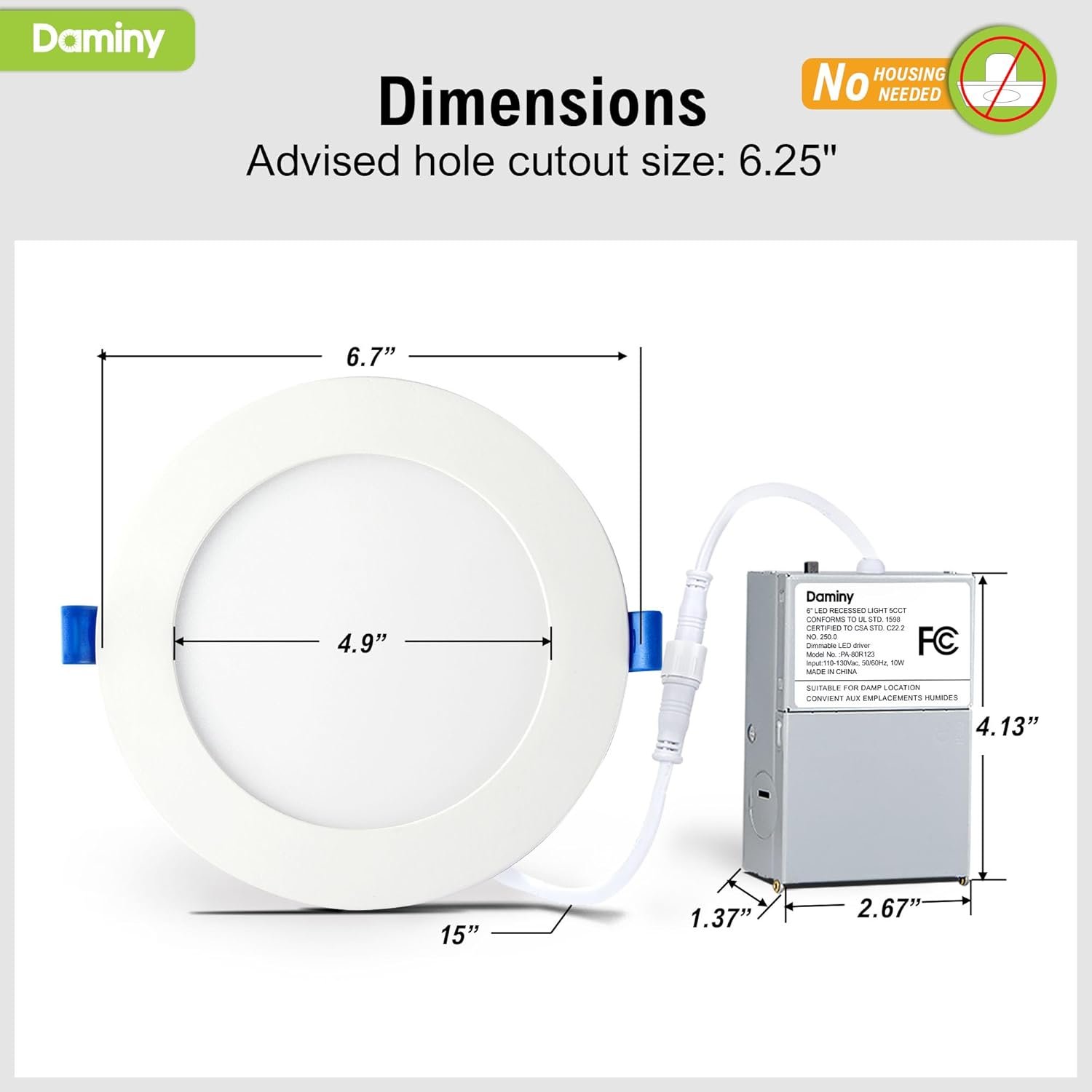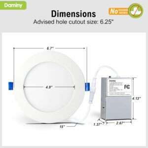 5 CCT-en-1 5 opciones de temperatura de color (2700K/3000K/3500K/4000K/5000K) para diferentes escenarios de aplicación, elimina la molestia de devolver o cambiar productos debido a una temperatura de color inapropiada Fácil instalación Iluminación empotrada sin canalones adecuada para readaptación y nueva decoración, la instalación se puede completar en minutos. Tamaño delgado adecuado para todo tipo de techos y vigas Alto brillo Utiliza los chips LED líderes del mundo con lúmenes más altos y menos potencia, hasta 1100 lm consumen solo 10 vatios, equivalente a 100 W de lámparas incandescentes, ahorrando hasta un 92% en costos de energía al año Regulable Compatible con la mayoría de los reguladores, atenuación suave del 5% al 100% para varios escenarios de aplicación Seguridad Diseño con clasificación IC: seguro para contacto directo con el aislamiento del techo Beneficios de Daminy Las luces LED empotradas Daminy vienen con garantía de 5 años, servicio al cliente amigable dentro de 12 horas