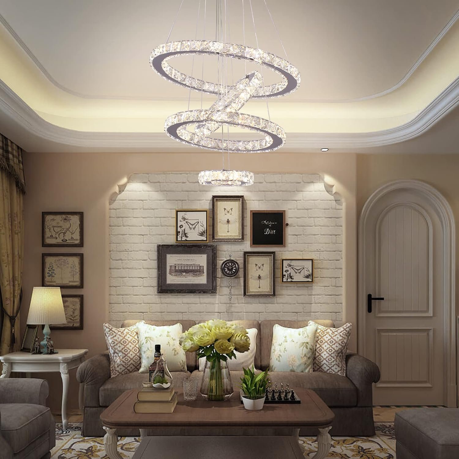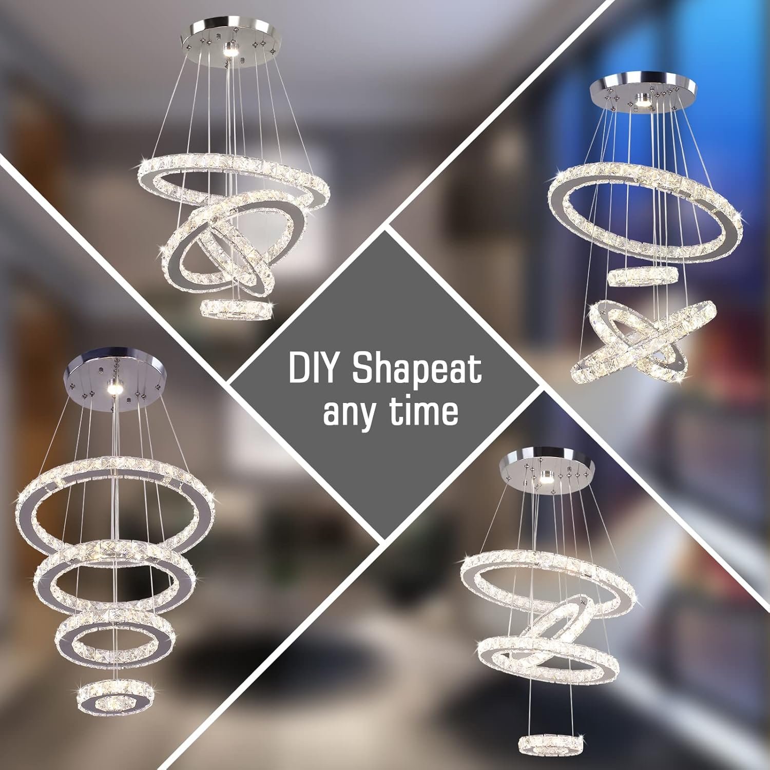 Dixun Candelabros de Cristal Modernos con Anillos LED, Lámpa