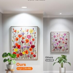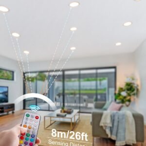 Cambio de color RGB + CCT: nuestra iluminación LED empotrada de 15,2 cm tiene 9 colores RGB y 3 modos dinámicos, modo flash, modo suave y modo romántico. La temperatura de color varía desde 2700 K-6000 K de blanco cálido a luz diurna fría, por lo que puedes obtener fácilmente tu ambiente favorito, puede ser iluminación general, iluminación ambiental, iluminación decorativa, iluminación de fiesta, etc BRILLO AJUSTABLE: 5 niveles de brillo están disponibles (0.5%-10%-30%-50%-100%), y se pueden ajustar mediante el botón de atenuación en el control remoto. 100% de brillo para iluminación diaria, 30% de brillo para iluminación auxiliar nocturna y 10% de brillo para modo de suspensión para satisfacer diferentes requisitos. También hay una función de luz nocturna de un solo toque que proporciona las luces de lata más tenues directamente (Nota: no es compatible con interruptores de atenuación de pared tradicionales) Sin parpadeo y muestra colores verdaderos: experimenta luces empotrables suaves y estables de 15,2 cm que reducen eficazmente la fatiga ocular al leer, trabajar o relajarse durante largos períodos de tiempo. Es una opción perfecta para oficinas en casa, habitaciones de bebé y noches acogedoras. Además, tiene un alto índice de reproducción cromática, mostrando colores verdaderos con una precisión excepcional (CRI >90), lo que hace que las decoraciones, las obras de arte y la comida parezcan más vívidas y ricas CONTROL REMOTO FÁCIL DE USAR: No es necesario conectarse a Internet, no hay necesidad de aprender aplicaciones complejas, incluso los ancianos y los niños pueden comenzar en 5 segundos. ¿Viendo una película y necesita una luz más tenue? Un clic para hacer que las luces LED empotradas pasen del 50% al 30%. Di adiós a la molestia de levantarte de la cama para buscar tientas con el interruptor o confiar en el funcionamiento engorroso del teléfono celular Función de apagado de luz de retraso: Esta luz de lata se agrega recientemente con una función de apagado retardado. Presiona una vez para un retraso de 1 minuto, y puedes configurarlo hasta 12 minutos, perfectamente programado para terminar un cuento antes de acostarte para tu pequeño. Toque cuando esté somnoliento, las luces se apagan cuando duerme, para que nunca se despierte por el brillo repentino. Deja que este downlight inteligente de 15,2 cm sea tu guardián del sueño Función de sincronización y memoria: con un solo toque, puede sincronizar y controlar todas las luces de techo empotradas cercanas. El ritmo de cambio de color permanece constante, ¡no es necesario ajustar cada luz individualmente! El último ajuste se conservará después de apagar el control remoto (la función de memoria no está disponible si el interruptor de pared está apagado) FÁCIL INSTALACIÓN: El diseño de luz empotrada encaja perfectamente en techos estrechos y espacios reducidos. La instalación es muy sencilla, simplemente conecta los cables, atornilla el enchufe E26 y asegúralo con clips de resorte. Disfruta de una iluminación suave y silenciosa y opciones para compartir con tu familia, por lo que es una opción inteligente y confiable para cualquier hogar