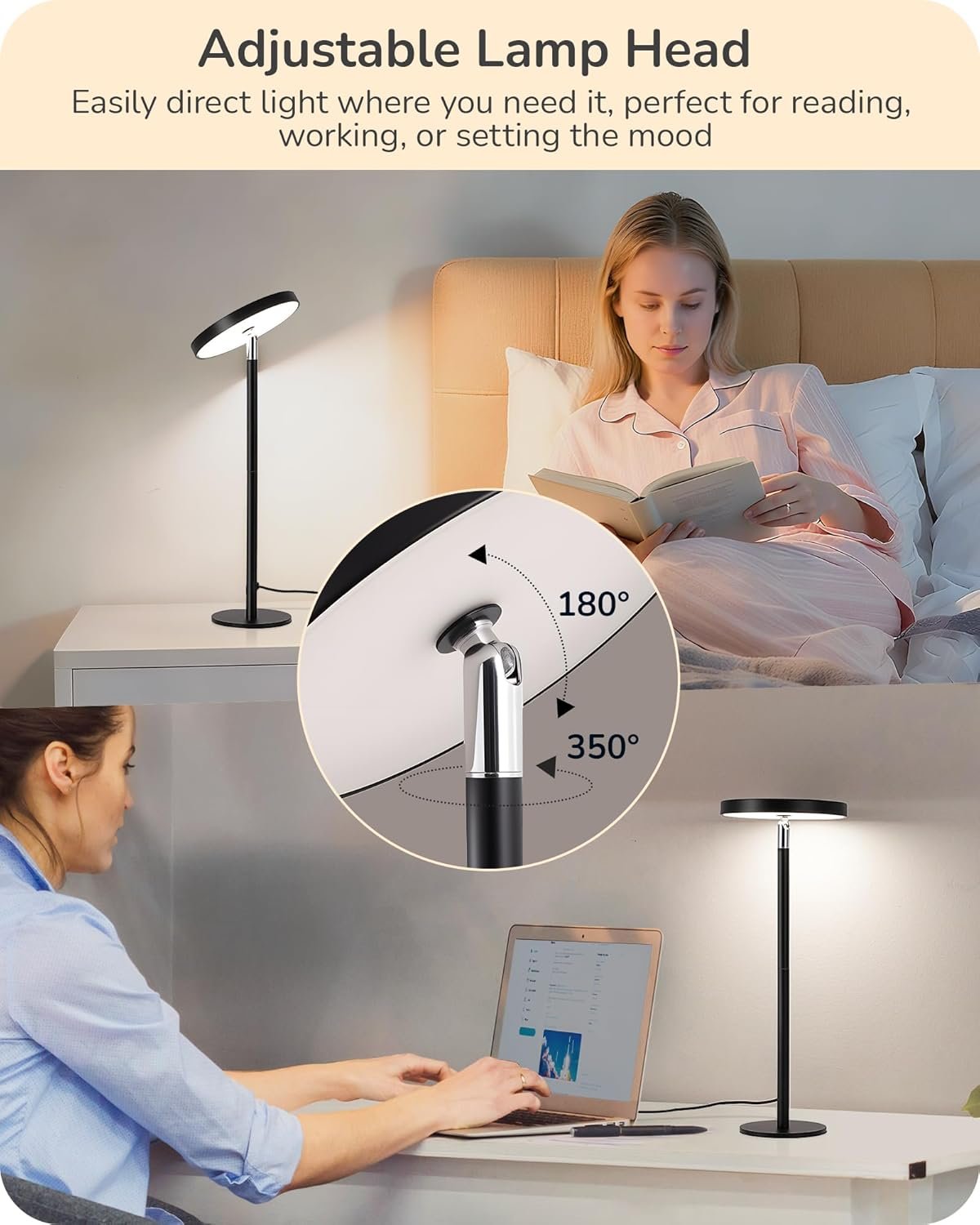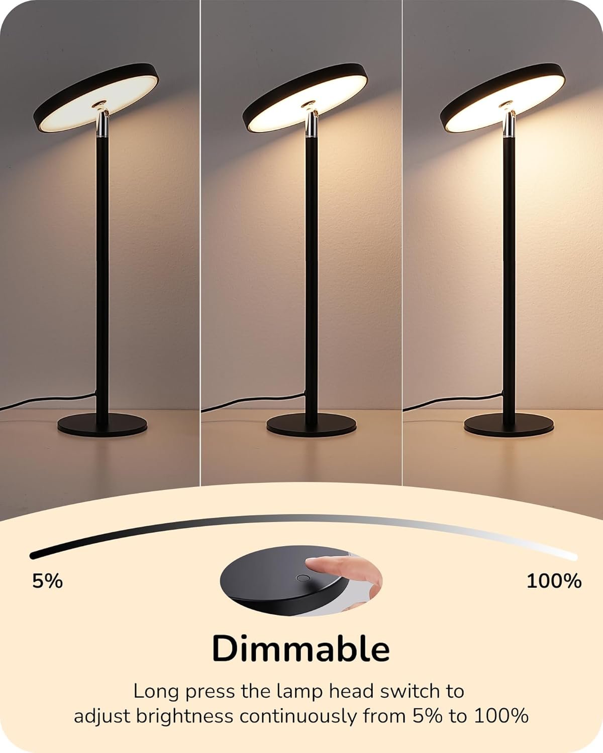 EDISHINE Lámpara de mesa LED con 2 alturas ajustables, 5%-10
