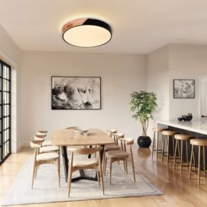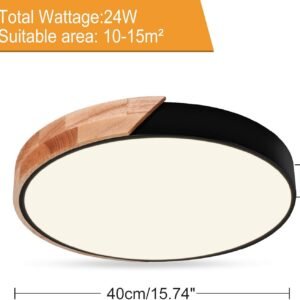 Luz de techo regulable: totalmente regulable con control remoto (incluido) para elegir blanco cálido de 3000 K, blanco natural de 4000 K o blanco frío de 6000 K. No es compatible con atenuador doméstico. El interruptor de pared SCR no se puede conectar, lo que afectará el uso normal del control remoto. Ten en cuenta que esta luz solo se puede fijar el color de la luz utilizando el control remoto, si usas un interruptor de pared, cada vez que enciendas la luz, el color será aleatorio y deberá restablecerse el color. Estilo moderno: la moderna lámpara de techo de forma redonda simple satisface todas las necesidades de diferentes espacios. La lámpara de techo está fabricada en madera, metal y pantalla de luz acrílica. La madera natural es única en su textura. Dimensiones e información de la bombilla: Ancho: 40,0 cm / Altura: 5,1 cm. Nuestra iluminación de montaje empotrado con chips LED de alta potencia ahorra hasta un 80% de energía que la lámpara halógena. Vida útil de más de 45.000 horas. Ahórrate el esfuerzo de cambiar bombillas en techos altos. (Incluido) Fácil de instalar: se atornilla directamente al techo, todos los accesorios de montaje están incluidos para una instalación rápida y fácil (proporciona instrucciones de montaje). Si tienes algún problema con esta luminaria, no dudes en ponerte en contacto con nuestro equipo de servicio al cliente.