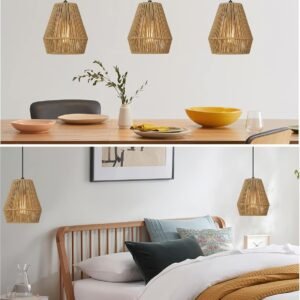 ELYONA Luces colgantes tejidas, lámpara colgante de ratán rú