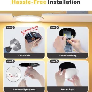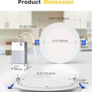 5 temperaturas seleccionables: con nuevo diseño adoptado, la luz se puede ajustar tanto a 2700 K (blanco suave), 3000 K (blanco cálido), 3500 K (blanco neutro), 4000 K (blanco frío) o 5000 K (luz diurna) a la vez para satisfacer tus necesidades. Un simple clic en el lateral de la base sirve para elegir el color más deseado que se adapte mejor a tu hogar Fiabilidad: esta luz LED empotrable, sin carcasa, tiene clasificación IC, ETL y Energy Star, y el terminal de cable está certificado por UL. Está permitido estar en contacto con aislamientos en techos, lo que significa que la caja de conexiones está térmicamente protegida Alto brillo: las delgadas luces de 15,2 cm utilizan la nueva generación de chips LED con más lúmenes y menor energía. 1050 lúmenes consumen 12 vatios, lo que equivale a una lámpara incandescente de 110 vatios. Esto te permite ahorrar hasta un 88% en costos de energía. Lente LED esmerilado antirreflejos y con resistencia a los arañazos Fácil de instalar: la iluminación empotrada de perfil bajo es adecuada para reequipamiento y nueva decoración: corta un agujero en el techo con una plantilla de agujero 1:1, conecta la caja de conexiones al cable, utiliza el clip de resorte para fijarla en el techo. Sin complicaciones, la instalación se puede completar en minutos. Solo requiere espacios de techo tan pequeños como 5,1 cm, se adapta a varios techos y vigas. La caja empotrada ya no es una limitación para tu elección Amplia aplicación: cuerpo ultrafino, 5%-100% de atenuación suave, compatible con la mayoría de los atenuadores, ubicación con humedad adecuada, satisface tipos de necesidades en aplicaciones como cocina, sala, dormitorio, baño, lugar de trabajo, áreas comunes, plafones exteriores y otros espacios difíciles de alcanzar