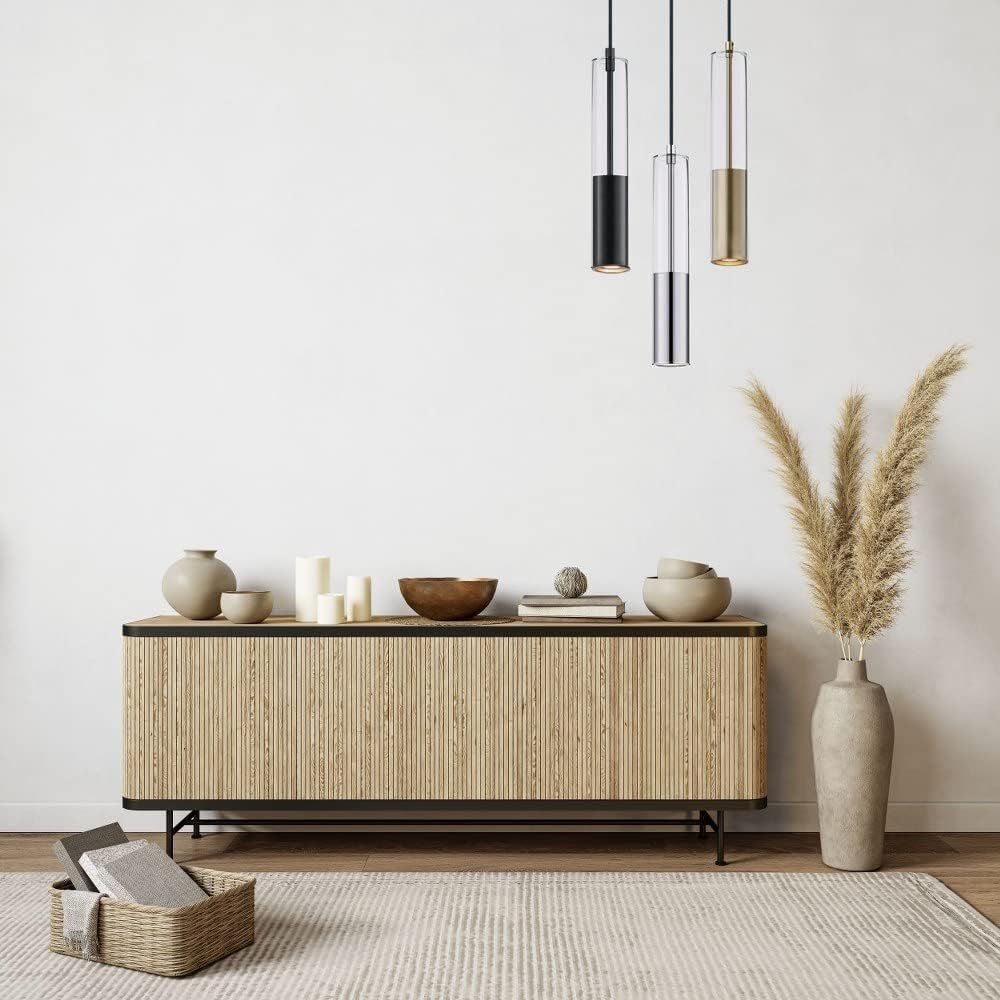 Diseño elegante y moderno: la lámpara colgante E11000-24PC cuenta con un diseño contemporáneo con tubos de aluminio mecanizado disponibles en impresionantes acabados de cromo pulido, negro o latón, perfectamente complementado con superposiciones de vidrio transparente para un toque elegante. Opciones de instalación versátiles: El E11000-24PC es adaptable para techos inclinados, por lo que es una opción ideal para varios diseños de habitaciones. Se puede instalar como un solo colgante o como parte de una configuración de colgante lineal de 4 luces, proporcionando flexibilidad para sus necesidades de iluminación. Larga duración y eficiencia energética: con una vida útil nominal de 25,000 horas, esta lámpara colgante LED no solo ahorra energía, sino que también reduce la frecuencia de reemplazo de bombillas, lo que la convierte en una solución de iluminación rentable para su hogar u oficina. Paquete completo: esta lámpara colgante viene con una pantalla incluida, asegurando un aspecto pulido justo fuera de la caja. Ten en cuenta que los kits de toldo de 120 V se venden por separado para una fácil instalación y compatibilidad con tu configuración existente.