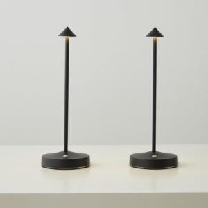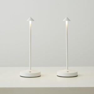 Interruptor táctil y regulable: Esta lámpara de mesa sin cables con diseño minimalista se caracteriza por su practicidad: solo toca el botón en la base de las lámparas de mesa para encender/apagar (tienes dos niveles de brillo para elegir); puedes ajustar la intensidad de la luz según lo desees manteniendo presionado el interruptor; Índice de reproducción cromática (CRI) >80, temperatura de color de la luz 3000 Kelvin Lámpara de mesa portátil sin cable: Esta lámpara de mesa sin cable pesa solo 0.77 lb (Diámetro 4.13 in x Altura 11.8 in) y ocupa poco espacio, lo que la hace fácil de sostener e ideal para cualquier entorno; La lámpara de mesa con USB se puede cargar con un adaptador USB universal o cualquier puerto USB, incluyendo laptops, computadoras, bancos de energía, tomas de pared o regletas de enchufes; Puedes colocar la lámpara de mesa donde sea necesario, incluso donde no haya toma de corriente Diseño minimalista: esta lámpara de mesa recargable está diseñada en un cuerpo de aluminio pintado, difusor de policarbonato y fuente de luz LED; esta lámpara de mesa tiene atenuación táctil y clasificación IP54, por lo que es adecuada tanto para uso en interiores como exteriores Resistente al agua: Esta lámpara recargable sin cables tiene una clasificación IP54 y el cuerpo de aluminio puede bloquear eficazmente la entrada de agua en el cuerpo de la lámpara, incluso si se usa al aire libre, no teme mojarse con la lluvia; Especialmente adecuada para eventos al aire libre: bodas, camping, picnics, bares, restaurantes, etc Amplia aplicación: Puede usar la lámpara de mesa en casa, en la oficina, en el jardín, en la terraza, en el balcón o en restaurantes y alojamientos durante todo el año; Llévelas al exterior para iluminar una cena o para leer bajo las estrellas; No hay límites para su imaginación