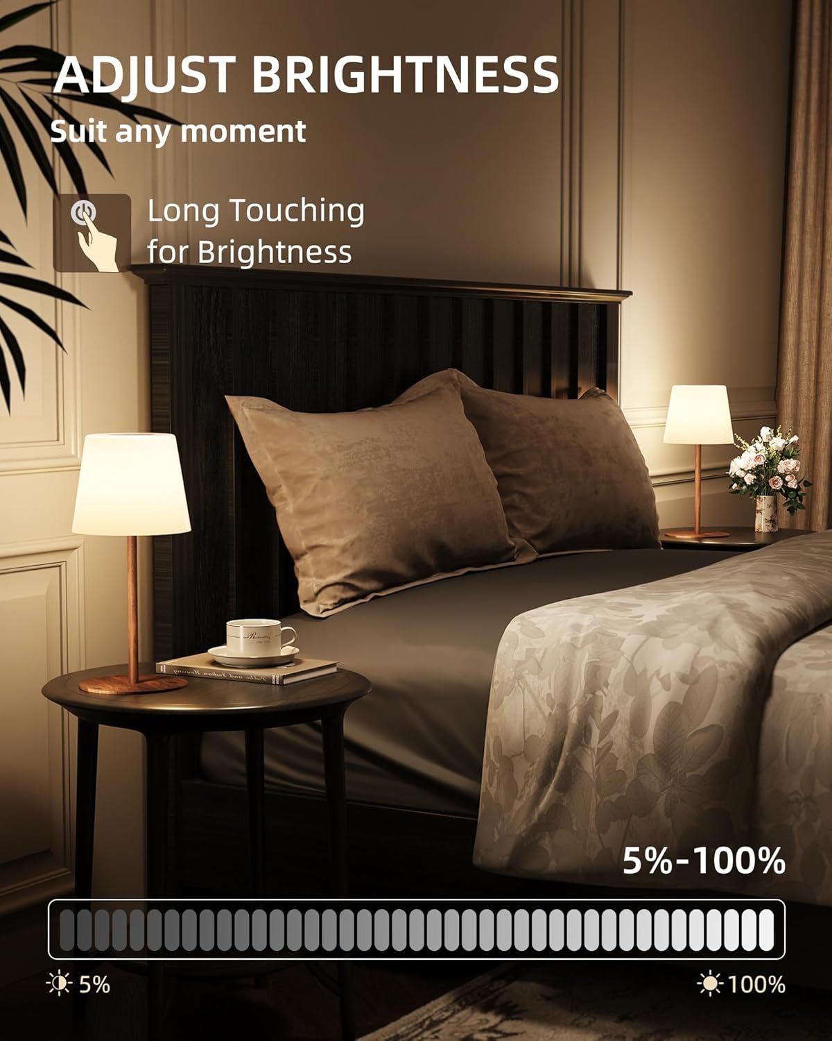 Componentes incluidos: 2 bases de goma antideslizantes, 2 cabezales de lámpara de brillo completo de 360°, 4 varillas de metal de grano de madera de 3.6 pulgadas, Manual del usuario