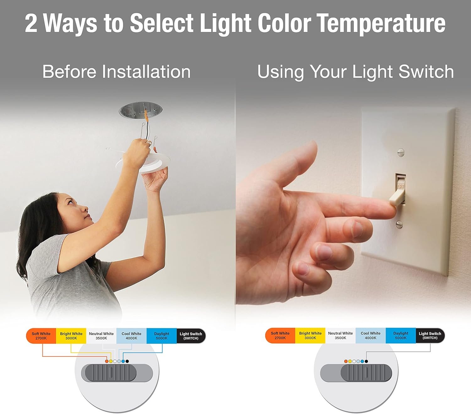 Seleccionable por color: personaliza tu luz con un interruptor de luz, no hay necesidad de conformarte con una sola temperatura de color. Elige entre cinco temperaturas de color (2700 K blanco suave, 3000 K blanco cálido, 3500 K blanco neutro, blanco frío 4000 K y luz diurna de 5000 K) para que coincida perfectamente con el estado de ánimo y la funcionalidad de tu espacio. Selecciona fácilmente tu color preferido utilizando un interruptor de pared estándar, no necesita aplicación, control remoto o configuración complicada. TECNOLOGÍA LED DE AHORRO ENERGÉTICO SUSTITUYE A UNA DE 75 W DE ENCHUFE Actualiza tu iluminación empotrada con la luz LED direccional de 9,4 W de Feit Electric, un reemplazo de eficiencia energética para una bombilla tradicional de 75 vatios. Ahorre hasta un 87% en costos de energía sin comprometer el brillo. Perfecto para propietarios de viviendas y profesionales que buscan reducir el consumo de energía mientras mantienen una iluminación potente y consistente en habitaciones grandes o espacios con techos altos. Salida superbrillante de 850 lúmenes, regulable para un ambiente flexible – Disfruta de una iluminación brillante y nítida con 850 lúmenes de luz de alto CRI (90+) que mejora los colores y tonos de piel para una apariencia más vibrante y realista. Compatible con la mayoría de los reguladores estándar, esta luz empotrada te permite controlar los niveles de brillo desde la máxima luminosidad hasta un brillo suave, ideal para salas de estar, cocinas, oficinas y entornos comerciales. INSTALACIÓN FÁCIL SE ADAPTA A LA MAYORÍA DE LAS LATAS EMPOTRADAS DE 12,7 cm Y 15,2 cm CON ADAPTADOR E26 Diseñado para instalaciones de modernización rápidas y seguras, este downlight LED se adapta a la mayoría de las carcasas empotradas existentes de 12,7 cm o 15,2 cm. Viene completo con un adaptador de base roscada E26 y clips de resorte para una instalación rápida y sin herramientas. Actualiza las luces empotrables más antiguas a LED en minutos sin la necesidad de recableado o hardware adicional. RENDIMIENTO DURADERO Y DE LARGO PLAZO VIDA ÚTIL DE 50.000 HORAS Y GARANTÍA DE 5 AÑOS Construido para durar, este downlight de Feit Electric ofrece una vida útil nominal extendida de 50.000 horas, minimizando los costos de reemplazo y mantenimiento a lo largo del tiempo. Respaldado por una garantía del fabricante de 5 años para mayor tranquilidad. Ideal tanto para aplicaciones residenciales como comerciales, incluyendo techos abovedados, áreas de alto tráfico y grandes espacios abiertos. Más de 45 años de innovación de iluminación: Feit Electric ha sido una empresa familiar durante más de cuatro décadas, comprometida a ofrecer soluciones de iluminación confiables y de alto rendimiento. Nuestros productos se prueban para calidad, seguridad y satisfacción del cliente. Si experimentas algún problema, comunícate a través de nuestro sitio web oficial para obtener resolución de problemas por chat en vivo y soporte al cliente.