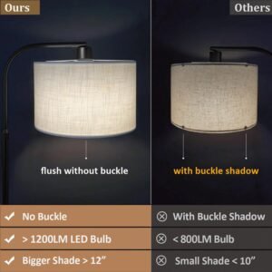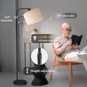 Control Inteligente y Atenuación Continua – La lámpara de pie negra viene con bombilla inteligente de alto brillo de 1200 lúmenes, múltiples controles vía control remoto, teléfono e interruptor de pie, atenuación continua tanto para temperatura de color (3000K-6500K) como para brillo (0%-100%), compatible con Alexa y Google Assistant. Nota: el control remoto necesita 2 pilas AAA, no incluidas Altura y ángulo ajustables – Esta lámpara de pie en arco está bien diseñada con altura ajustable y ángulo giratorio. Altura ajustable entre 138,9 cm-168,9 cm con brazo giratorio de 360° y cabezal de lámpara ajustable. Puedes ajustar la luz al ángulo y posición deseados cuando leas, trabajes o la necesites de otra manera. Vida Colorida – La lámpara de pie no solo proporciona suficiente brillo de luz blanca, sino también millones de colores para crear una variedad de efectos de iluminación para cualquier ocasión, como cumpleaños de niños, cenas o fiestas musicales. Elije uno que se adapte a tu estado de ánimo y crea una atmósfera de iluminación verdaderamente fantástica. Lámpara de pie negra moderna: diseño estético elegante, la lámpara de pie regulable negra con pantalla de tela de alta gama se adapta a cualquier habitación, perfecta para tus salas de estar, dormitorios, etc. La apariencia elegante mejora tu hogar y espacio para hacer que la noche sea hermosa y relajante. Fácil de montar y garantía de satisfacción – La lámpara de pie es fácil de montar. Simplemente siga las instrucciones y atornille todas las piezas juntas. Si tienes preguntas o no estás satisfecho con tu compra, no dudes en ponerte en contacto con nosotros y estamos comprometidos a hacerte sonreír.