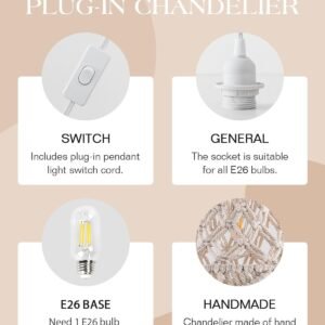 FLSFU Lámpara colgante bohemia enchufable con pantalla de ma