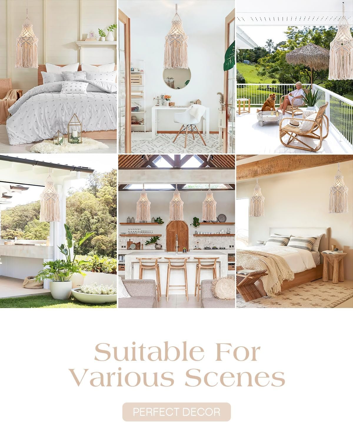 Detalles: Pantalla de lámpara hecha a mano, decoración bohemia para habitación, decoración boho para dormitorio