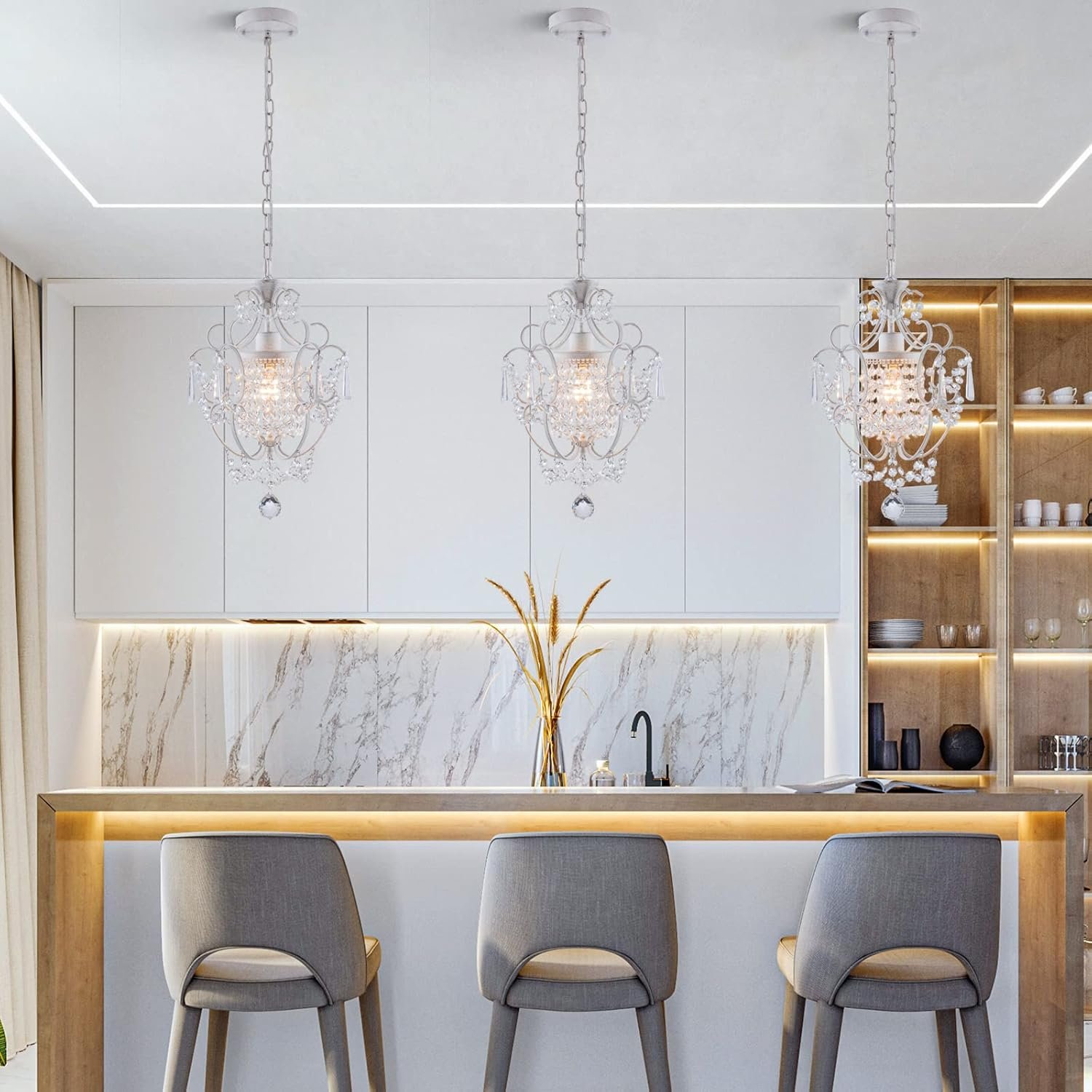 Diseño perfecto de candelabro pequeño: añade glamour y luz suave a tu espacio con esta hermosa y sofisticada lámpara de araña de cristal con elementos de estilo moderno, hechos de cristal real y hierro de alta calidad, añadiendo un toque contemporáneo a tu área. La encantadora luz emite un cálido brillo en tu espacio. Dimensiones de la lámpara de araña: 27,9 cm de ancho x 38,1 cm de alto, cadena ajustable de 100,8 cm, altura máxima de 130,8 cm; Tipo de base de bombilla: E26 (bombilla no incluida). Rango de voltaje: 120V. Potencia máxima: 60 W. Regulable (no incluye interruptor de atenuación). Amplia aplicación: los pequeños candelabros de cristal son perfectos para decorar baño, habitación de niñas, sala de estar, dormitorios, guardería, isla de cocina, armario y comedor. El acabado de pintura blanco y dorado complementa el encantador accesorio de mini candelabro. Los cristales poliédricos transparentes de la mini araña de cristal suavizan la luz y emiten diferentes patrones de luz. Esta es definitivamente la elección perfecta para la decoración de iluminación de tu hogar. La diversión del montaje manual Esta lámpara de araña de cristal no tiene dificultad en el montaje, hemos grabado cuidadosamente un video tutorial de montaje para ayudarte a completar el montaje fácilmente. Podrás tener una lámpara de araña de cristal montada por ti mismo, ¡ven y experimenta este sentido de logro! Servicio sin preocupaciones: prometemos una política de devolución y reembolso del 100% para candelabros de cristal que cumplen con los estándares. Si tiene alguna sugerencia y pregunta. No dude en ponerse en contacto con nosotros. Sobre el color El color de esta lámpara de araña es pintura hecha a mano, acabados de pintura blanca y dorada, cada una es única, el color hecho a mano tendrá una pequeña variación.