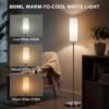 Componentes incluidos: Bombilla inteligente de 9 W, Control remoto, Interruptor de encendido y apagado de pie, Poste negro con base, Sombra blanca